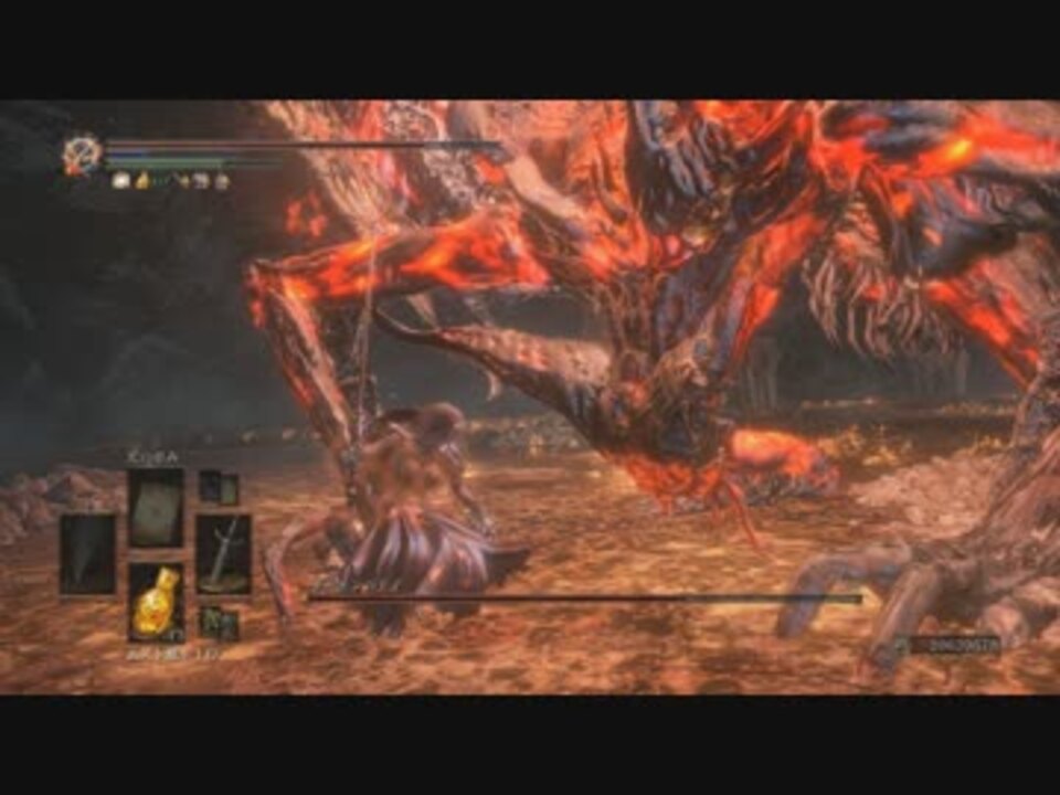 PC(steam)版 2周目です。SL等のキャラステータス、装備は動画冒頭を参照してください<br>ノーダメとかの神プレイではありません。むしろ私は下手です。それでも、頑張って攻略するという趣旨の動画です<br><br>この様な【普通の攻略】動画が無いので頑張ってチャレンジを繰り返して、本動画を作ったという次第です<br>あったとしても、PC(steam) 版ではなく、ゲハ版なので(AIの動き、物理エンジン、当たり判定で使用されるCPUパフォーマンスが圧倒的に違う。また、フレームレートの差もあります) 参考になりません<br><br>デーモンの王子戦は、傷ついたver です<br><br>最初は発火状態だけのデーモンを相手にします。うろ底から開幕から発火状態、傷ついた方は少し後に発火状態になるので、うろ底が鎮火状態になるまで逃げまくります。その際に邪魔なオブジェクトはデーモンに壊してもらう様に逃走経路をとると良いでしょう。たまに後方を確認して、うろ底が鎮火したら、傷ついた方は発火状態になっているので、鎮火した方となるべく距離を開ける為に傷ついた方との戦闘開始は少し遅らせた方が良いかもしれません。とにかく2体同時相手は無謀なので、発火状態の方との戦闘を優先します。なぜなら、逃げ回った場合、発火状態の方はあっという間に追いついてきますが、鎮火状態の方は追いついて来るまでが遅い為です。ただし、鎮火状態からの猛毒直線爆破は注意しましょう。なので、発火状態と戦闘している最中は鎮火状態はどこにいるか大体位置を把握しておきましょう<br><br>傷ついた、うろ底、デーモンの王子に共通ですが、頭部に致命攻撃が入る場合の効果音が聞こえてから、頭部に致命攻撃を入れるまで時間的余裕(検証していませんが、約3~5秒前後) がありますので、致命攻撃を入れるまでに更に攻撃を叩き込む事が可能です<br><br /><strong>ノーダメとかの神プレイではありません。むしろ私は下手です。それでも、頑張って攻略するという趣旨の動画です</strong>