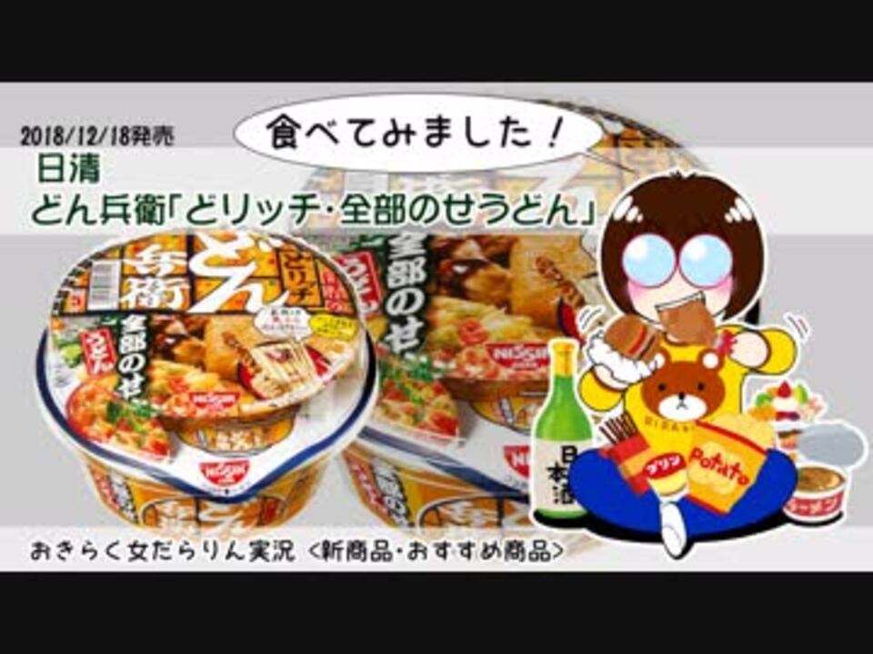 ご視聴ありがとうございます(*´ω`*)<br>2018/12/18に発売された<br>日清「どん兵衛・どリッチ全部のせうどん」のレポートをさせて頂きました。<br><br>【食べてみました!】シリーズは<br>りらくまが食べたり、飲んだりした新商品・おすすめ商品をご紹介させて頂く動画になります。<br>皆様のご参考になれば嬉しいです。<br><br>YouTube&ニコニコ動画に投稿しています。<br>コメント、高評価、チャンネル登録して頂けたらとても励みになります。<br>よろしくお願いします(*´∇`*)<br><br>【おきらく女★だらりん実況】まとめ ⇒ <a href="http://www.nicovideo.jp/mylist/14732194" target="_blank" rel="noopener nofollow">http://www.nicovideo.jp/mylist/14732194</a><br>YouTubeマイチャンネル ⇒ <a href="http://www.youtube.com/c/rirakuma360" target="_blank" rel="noopener nofollow">http://www.youtube.com/c/rirakuma360</a><br>ブログ ⇒ <a href="http://360kirikko.blog.fc2.com/" target="_blank" rel="noopener nofollow">http://360kirikko.blog.fc2.com/</a><br>Twitter ⇒ @rirakuma_360