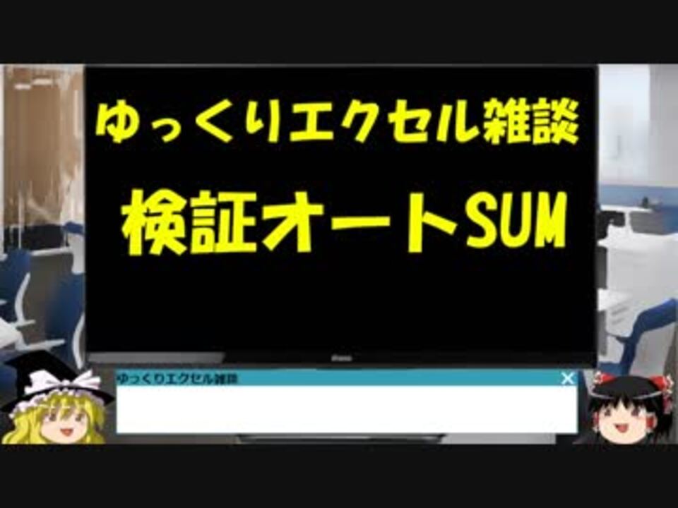 <a href="https://www.nicovideo.jp/watch/sm34720943" class="watch">sm34720943</a>←前||次→<a href="https://www.nicovideo.jp/watch/sm34730138" class="watch">sm34730138</a><br><br>オートSUMはあまり使ったことが無かったのですが紹介してしまって<br>反響が大きかったので、色々と検証してみました。<br><br>あまり使わないほうが良いかなと思いました。<br />現場で培った経験を元にエクセルあるあるネタを入れつつ<br>仕事に役立つ情報を提供!<br><br><strong>YOUTUBE版</strong><br><a href="https://www.youtube.com/watch?v=xfsl3ziD1ag" target="_blank" rel="noopener nofollow">https://www.youtube.com/watch?v=xfsl3ziD1ag</a><br><span style="font-size: 13px;"><strong>マイリスト(</strong></span><span style="font-size: 13px;"><a href="https://www.nicovideo.jp/mylist/64075136" target="_blank" rel="noopener">mylist/64075136</a></span><span style="font-size: 13px;"><strong>)入門編(</strong></span><span style="font-size: 13px;"><a href="https://www.nicovideo.jp/mylist/64390581" target="_blank" rel="noopener">mylist/64390581</a></span><span style="font-size: 13px;"><strong>)VBA編(</strong></span><a href="https://www.nicovideo.jp/mylist/64204466" target="_blank" rel="noopener">mylist/64204466</a>)<br><span style="font-size: 13px;"><strong>Access編(</strong></span><a href="https://www.nicovideo.jp/mylist/64875641" target="_blank" rel="noopener">mylist/64875641</a><span style="font-size: 13px;"><strong>)<br>Twitter(</strong></span><a href="https://twitter.com/MHTUpQbYQwatGFb" target="_blank" rel="noopener nofollow">https://twitter.com/MHTUpQbYQwatGFb</a><span style="font-size: 13px;"><strong>)</strong></span><br><br>使用ソフト<br>AviUtl :<a href="http://spring-fragrance.mints.ne.jp/a..." target="_blank" rel="noopener nofollow">http://spring-fragrance.mints.ne.jp/a...</a><br>ゆっくりMovieMaker3/ 4 :<a href="https://manjubox.net/ymm3/" target="_blank" rel="noopener nofollow">https://manjubox.net/ymm3/</a><br>OBS Studio :<a href="https://obsproject.com/ja/download" target="_blank" rel="noopener nofollow">https://obsproject.com/ja/download</a><br>Office365 :<a href="https://amzn.to/2LcO9Md" target="_blank" rel="noopener nofollow">https://amzn.to/2LcO9Md</a>