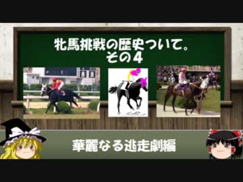 前作<a href="https://www.nicovideo.jp/watch/sm34657107" class="watch">sm34657107</a> 次作<a href="https://www.nicovideo.jp/watch/sm34797170" class="watch">sm34797170</a> <span style="color: #000000; font-size: 14px;">牝馬シリーズマイリス<a href="https://www.nicovideo.jp/mylist/65869255" target="_blank" rel="noopener">mylist/65869255</a> 競馬解説マイリス</span><span style="color: #006699; font-size: 14px;"><a href="https://www.nicovideo.jp/mylist/64207040" target="_blank" rel="noopener">mylist/64207040</a></span><br><br>つべ <a href="https://www.youtube.com/watch?v=XpANNVusd-4" target="_blank" rel="noopener nofollow">https://www.youtube.com/watch?v=XpANNVusd-4</a><br><br>競馬の牝馬挑戦の歴史について解説してみました。<br><br>今回は1970年~1980年プリテイキャストを年代を追いながらの紹介。<br><br>前回トウメイは71年でしたが、牝馬三冠レースが確立したのが70年でしたので1年戻ってそこから。<br>本当はグレード制導入の84年ぐらいまでやる予定でしたが、思い入れのある馬も出てきたので(主にテスコガビーとハギノトップレディ)80年までになってしまいました(;^ω^)<br>テスコガビーの二冠レースと2013年JRACMは必見です!!<br><br>無計画が祟って全4・5回の予定はあっさり崩壊しましたのであしからずm(__)m<br>恐らく2,3回分延長します・・・・いや、もっとかも(;^ω^)<br><br>個人のにわか知識がベースなので、間違いがあっても許して下さい。<br>何でもするとは言いません。<br><br>登場馬:ニットウチドリ・テスコガビー・インターグロリア・ハギノトップレディ・ラフオンテース・プリテイキャスト<br><br><br>BGM:甘茶の音楽工房様<br>画像提供元: TURF☆DUST 様 うまぽっと様<br>参考HP:優駿達の蹄跡様 Wikipedia
