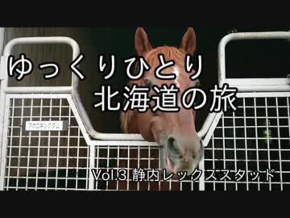 2018年の北海道旅行の続きです。<br>興味の無い方には申し訳ない馬旅です。<br>まずは、レックススタッドに行ってみます。<br>今回も、ひとりサイコロ旅のコメント返信が中心となります。<br>Vol.2 <a href="https://www.nicovideo.jp/watch/sm34727824" class="watch">sm34727824</a> <span style="color: #000000; font-size: 14px;">← </span>本作 <span style="color: #000000; font-size: 14px;">→ Vol.4 </span><a href="https://www.nicovideo.jp/watch/sm34777008" class="watch">sm34777008</a><br>北海道の旅 マイリスト <a href="https://www.nicovideo.jp/mylist/64895663" target="_blank" rel="noopener">mylist/64895663</a><br><br><これまでの旅リスト><br>サイコロの旅台北編 マイリスト <a href="https://www.nicovideo.jp/mylist/64202510" target="_blank" rel="noopener">mylist/64202510</a><br>高雄旅 マイリスト <a href="https://www.nicovideo.jp/mylist/63827857" target="_blank" rel="noopener">mylist/63827857</a> <br>シドニー旅 マイリスト <a href="https://www.nicovideo.jp/mylist/63160334" target="_blank" rel="noopener">mylist/63160334</a> <br>シンガポール旅 マイリスト <a href="https://www.nicovideo.jp/mylist/62588050" target="_blank" rel="noopener">mylist/62588050</a> <br>台湾旅2018(冬) マイリスト <a href="https://www.nicovideo.jp/mylist/61440387" target="_blank" rel="noopener">mylist/61440387</a> <br>ドイツ旅 マイリスト <a href="https://www.nicovideo.jp/mylist/60902323" target="_blank" rel="noopener">mylist/60902323</a><br>バンコク旅 マイリスト <a href="https://www.nicovideo.jp/mylist/60140061" target="_blank" rel="noopener">mylist/60140061</a><br>台湾旅 マイリスト <a href="https://www.nicovideo.jp/mylist/60522534" target="_blank" rel="noopener">mylist/60522534</a><br>京都旅 マイリスト <a href="https://www.nicovideo.jp/mylist/61141584" target="_blank" rel="noopener">mylist/61141584</a><br>広告ありがとうございます。励みになりますので、頑張ります。