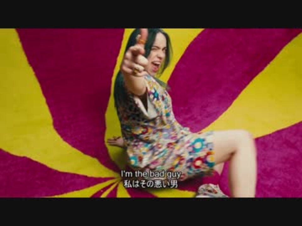 タフガイもひれ伏すびりーさんの持つ狂気な<br>一面が明らかに<br><br>こんなに笑顔で楽しそうに踊っている彼女の<br>姿を初めてみましたが,曲の内容を考えると<br>かえってこの奔放な感じが異様さを助長<br>してるようにも思えます.その他の演出も<br><span style="font-size: 13px;">言わずもがな</span><br><br>今後のビリー兄妹の活躍が楽しみですね<br><span style="color: #000000; font-size: 13px;">―—―――—――</span>ダア<span style="color: #000000; font-size: 13px;">―—―――—――</span><br>ビリー・アイリッシュ<br><br>※MVの冒頭部はこの曲を収録したアルバム<br><i>WHEN WE ALL FALL ASLEEP, <br>WHERE DO WE GO?</i>の1曲目 <br>(導入曲)の”!!!!!!!”です (bad guyは2曲目)<br><br>【Producer】<br>FINNEAS<br><br>【Official Music Video (YouTube)】<br><a href="https://www.youtube.com/watch?v=DyDfgMOUjCI" target="_blank" rel="noopener nofollow">https://www.youtube.com/watch?v=DyDfgMOUjCI</a><br><br>楽曲の情報,歌詞,及び和訳は以下の<br>サイトを参考にしています<br>【Genius】<br><a href="https://genius.com/Billie-eilish-bad-guy-lyrics" target="_blank" rel="noopener nofollow">https://genius.com/Billie-eilish-bad-guy-lyrics</a><br><br>【Wikipedia】<br><a href="https://en.wikipedia.org/wiki/Bad_Guy_(Billie_Eilish_song)" target="_blank" rel="noopener nofollow">https://en.wikipedia.org/wiki/Bad_Guy_(Billie_Eilish_song)</a><br /><br>【その他のMV】<br><a href="https://www.nicovideo.jp/mylist/65008021" target="_blank" rel="noopener">mylist/65008021</a><br><br>【大百科】<br><a href="https://dic.nicovideo.jp/u/85970835" target="_blank" rel="noopener nofollow">https://dic.nicovideo.jp/u/85970835</a>