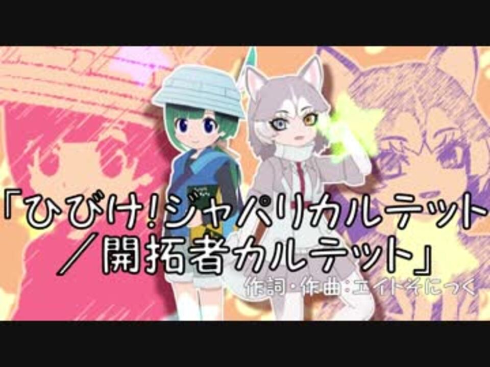 <span style="font-size: 16px;"><a href="https://www.nicovideo.jp/watch/sm35026402" class="watch">sm35026402</a></span><span style="font-size: 18px;"><strong> </strong></span><span style="font-size: 16px;"><a href="https://www.nicovideo.jp/watch/sm35184399" class="watch">sm35184399</a></span><span style="color: #ff0000; font-size: 18px;"><strong>←なんと歌っていただきました!すっごーい!!!</strong></span><br><br>【追記】<a href="https://www.nicovideo.jp/watch/sm34974978" class="watch">sm34974978</a> 仮歌うたっちゃいました。<br><strong>【さらに追記】<a href="https://www.nicovideo.jp/watch/sm38470331" class="watch">sm38470331</a> ともえちゃんのイメージソングできました。<br><br>ドモー!</strong><br>作曲とアムールトラさんが大好きなクソメガネのおにいさんです。<br><br>開拓者カルテットのここすきが溢れすぎてイメージソング作っちゃいました。<br>4人で歌う後期OPみたいなノリで聴いていただければ。うーがおー!<br>動画はカラオケバージョン音源です。<br>仮歌バージョンも録ってますが、アレがアレなので今のところ出しません。<br><br>音源DLはこちらから。↓<br><a href="https://drive.google.com/file/d/1lt7WJP2lKJj60YlYUhohRQ5l1IWPXQe6/view?usp=sharing" target="_blank" rel="noopener nofollow">https://drive.google.com/file/d/1lt7WJP2lKJj60YlYUhohRQ5l1IWPXQe6/view?usp=sharing</a><br>※けもフレR創作にのみご自由にお使いください。誰かを嫌な気持にする使い方は禁止。<br>質問などはトゥイッターのDMで!→@eightsonic<br><br><br><span style="color: #b7b7b7; font-size: 10px;">【蛇足】<br>OI氏おにいさんの最近の提供曲も「カルテット」ですやんか<br>偶然の一致ですが一人で勝手に爆笑してました。<br>けもフレRは細かいことを抜きにして、素敵だなぁと感じるコンテンツですので、<br>大切に育てられますように。</span>