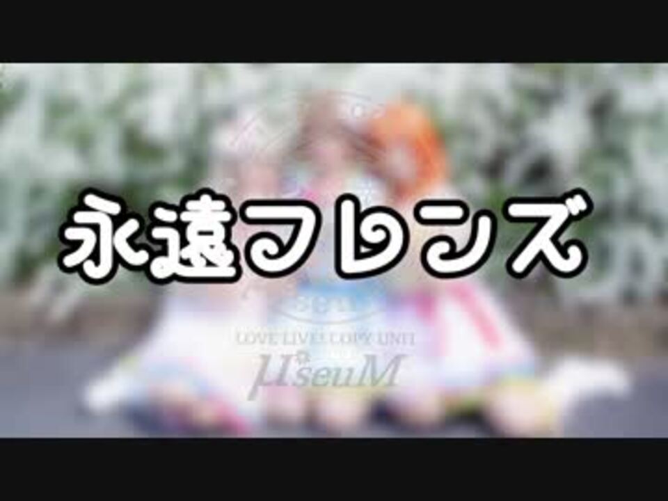 2017年04月21日に結成した<br>関西を中心に活動しているμ'sのコピーユニット【μ*seuM】です!<br><br>11作目の投稿はユニット祭で披露した<span style="color: #000000; font-size: 13px;">Printemps</span>☆<br>みゅんから【永遠フレンズ】になります☆彡<br><br>屋外撮影でお花や風景も<br>Printempsっぽく可愛い感じをイメージしました☆<br>よかったら見てやって下さい( *´艸`)<br><br><a href="https://www.nicovideo.jp/mylist/63016320" target="_blank" rel="noopener">mylist/63016320</a><br><br>メンバーは下記ご参照ください! <br><br>☆..........Member..........☆<br>μ*seuM公式twitter<br>【@u__seuM】<br><br><span style="color: #000000; font-size: 14px;">高坂穂乃果 さーや【@mgstsy】 <br>南ことり まっきぃ【@ProM_Makky】 <br>小泉花陽 りぃちゃん。【lie_lime】</span><br><br>撮影 まりりん様【@maririn_mg】 <br><br>
