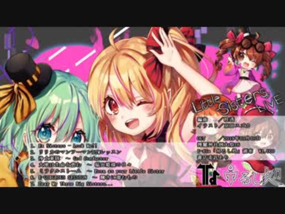 <strong>8名の「妹」たちによる狂演、開催!</strong><br><br><span style="font-size: 10px;">フランドール・スカーレット、古明地こいし、リリカ・プリズムリバー、綿月依姫、秋穣子、九十九八橋、依神女苑、etc...</span><br>あらゆる種族、あらゆる立場の「妹」たちの描く日常、葛藤、伝えたい想いが<br>あらゆるジャンルの音楽と共に放たれる!<br><br><strong>特設サイト:<a href="https://keisukeknight.wixsite.com/turushidoko/littlesisterslive" target="_blank" rel="noopener nofollow">https://keisukeknight.wixsite.com/turushidoko/littlesisterslive</a></strong><br><br>2019年05月05日 頒布(書店委託あり)<br>博麗神社例大祭16<br>I-45a「吊るし処」<br>詳細は特設サイトにて。<br><br>編曲・動画:桂透<br>イラスト:京田スズカ…<a href="https://www.pixiv.net/member.php?id=3718340" target="_blank" rel="noopener nofollow">https://www.pixiv.net/member.php?id=3718340</a><br /><br>製作曲…<a href="https://www.nicovideo.jp/mylist/65315306" target="_blank" rel="noopener">mylist/65315306</a><br>TwitterX(個人)…<a href="https://twitter.com/KeisukeKnight" target="_blank" rel="noopener nofollow">https://twitter.com/KeisukeKnight</a><br><span style="color: #000000; font-size: 13px;">TwitterX(サークル)…</span><a href="https://twitter.com/Turushidoko" target="_blank" rel="noopener nofollow">https://twitter.com/Turushidoko</a>