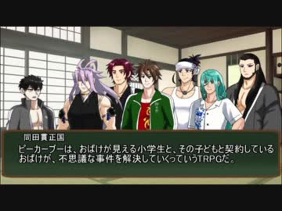 卓ゲでは4作目です。よろしくお願いいたします。<br>今回からは『ご近所メルヒェンRPG ピーカーブー』をおおきいお兄さんたちに遊んでもらいます。<br>準備回なので、PCの紹介と軽くゲームシステムの説明をするだけです。<br><br>冒頭の注意書きを読んでからご視聴ください。<br>また、腐コメ、誹謗中傷、転載などはご遠慮ください。<br>お借りしたものはコンテンツツリーにて。<br><br>■<span style="color: #000000; font-size: 13px;">明日葉</span><span style="font-size: 13px;">様、</span><span style="color: #000000; font-size: 13px;">美濃国審神者様、エアー様、嘉晴様、夏 絲恋様、Frantz様、こりどらす様、そうめん様、花猫様、空瀬真鈴様、備後国審神者様、キジムナー審神者様、長野県産白詰草様、パニックミラクル卓一同様、</span><span style="font-size: 12px;">社畜は舞踊りたい様、</span>いちご@提督+審神者様、審神者様、広告ありがとうございます! <br>マイリス、コメントありがとうございます!<br><br>次回→<a href="https://www.nicovideo.jp/watch/sm36595227" class="watch">sm36595227</a><br><br>前作:なまにく・源覚刀が百物語を阻止する動画→<a href="https://www.nicovideo.jp/watch/sm34856953" class="watch">sm34856953</a><br>動画とか用のTwitter:@mmd_mikan<br><span style="font-size: 10px;">※三次創作を送るときは、うp主の本垢をご存知でしたらそちらに送っていただいても大丈夫です。</span>