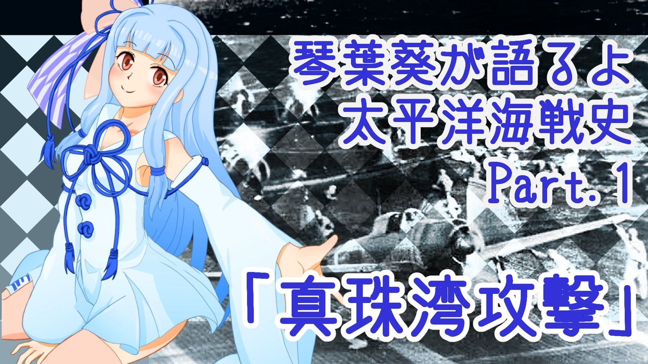 ようやくの初投稿動画です。Part.1と銘打ってますが次回以降失踪するかも(笑)<br>真珠湾攻撃から77年・・・令和初の国賓としてトランプ大統領が来日してますね。動画作ってからだと感慨深いものがあります。これからも日本とアメリカがより良い関係になることを祈って。<br><br><strong>次回【Part.2 スラバヤ沖海戦】</strong><strong><u><a href="https://www.nicovideo.jp/watch/sm35522388" class="watch">sm35522388</a></u></strong><br><br>【琴葉葵が語るよ】太平洋海戦史シリーズ <strong><u><a href="https://www.nicovideo.jp/mylist/65919411" target="_blank" rel="noopener">mylist/65919411</a></u></strong><br>【琴葉茜も語りたい】雑談シリーズ <strong><u><a href="https://www.nicovideo.jp/mylist/66243042" target="_blank" rel="noopener">mylist/66243042</a></u></strong><br>