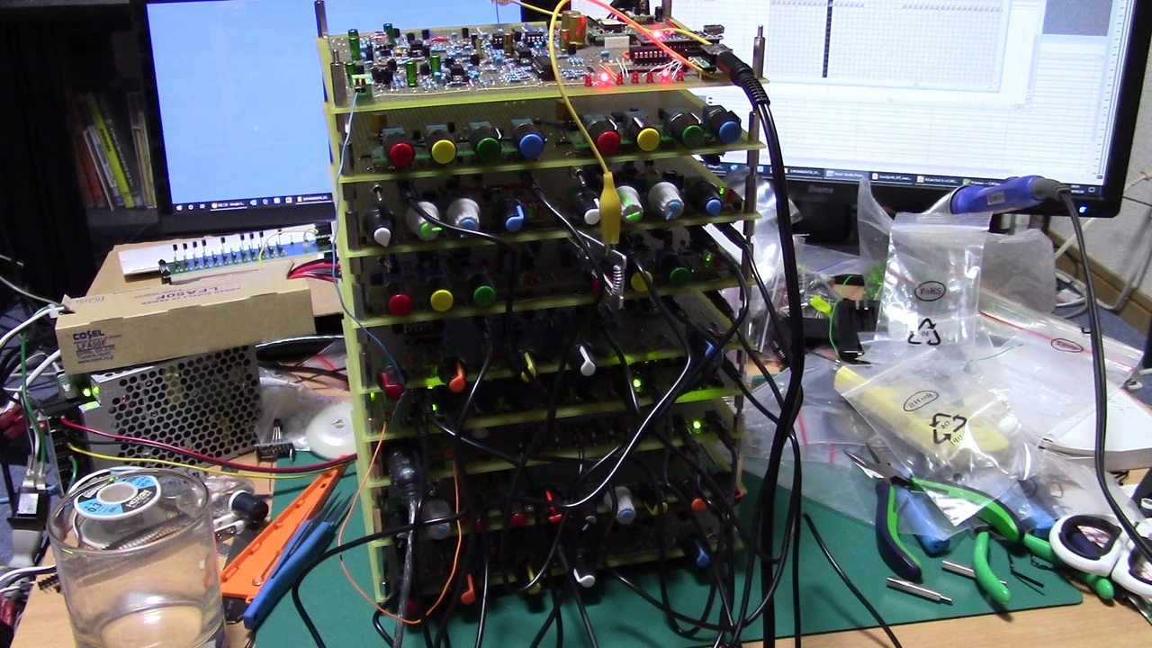 Vocaluinoの増設モジュールにアナログシンセを追加したい!!<br>と思い、最近アナログシンセのモジュールばかり作ってます。<br>今の回路は山下シンセとANALOG2.0とCMU-800を真似して<br>作ってみたので鳴らしてみたというところです。<br>まだVCOが2個しかないので三重和音にはVCFも使っています。<br>音程が外れているのはご愛嬌ということで…(^^;;;;<br><br>広告・マイリス・フォロー・コメント等ありがとうございます。<br>帰ってきたら突然4000近く伸びていて何が起きているのか理解できていませんアタ((ヽ(゚ω゚;;;)ノノ))フタ<br>半分寝ながら作ったデータなのでお恥ずかしい限りです。<br>(音符の最後に変な音が入るのは和音のデータのためです。<br>同じデータをYMZ294で鳴らした物もあるので良ければどうぞ。<a href="https://www.nicovideo.jp/watch/sm31948861" class="watch">sm31948861</a>)<br>次回はもうちょっとイイカンジの物をうpしたいと思います。<br><br><span style="color: #000000; font-size: 13px;">次は盆休み頃目標で</span>鋭意、耳コピ&工作中ですのでのんびり見守ってください_o_