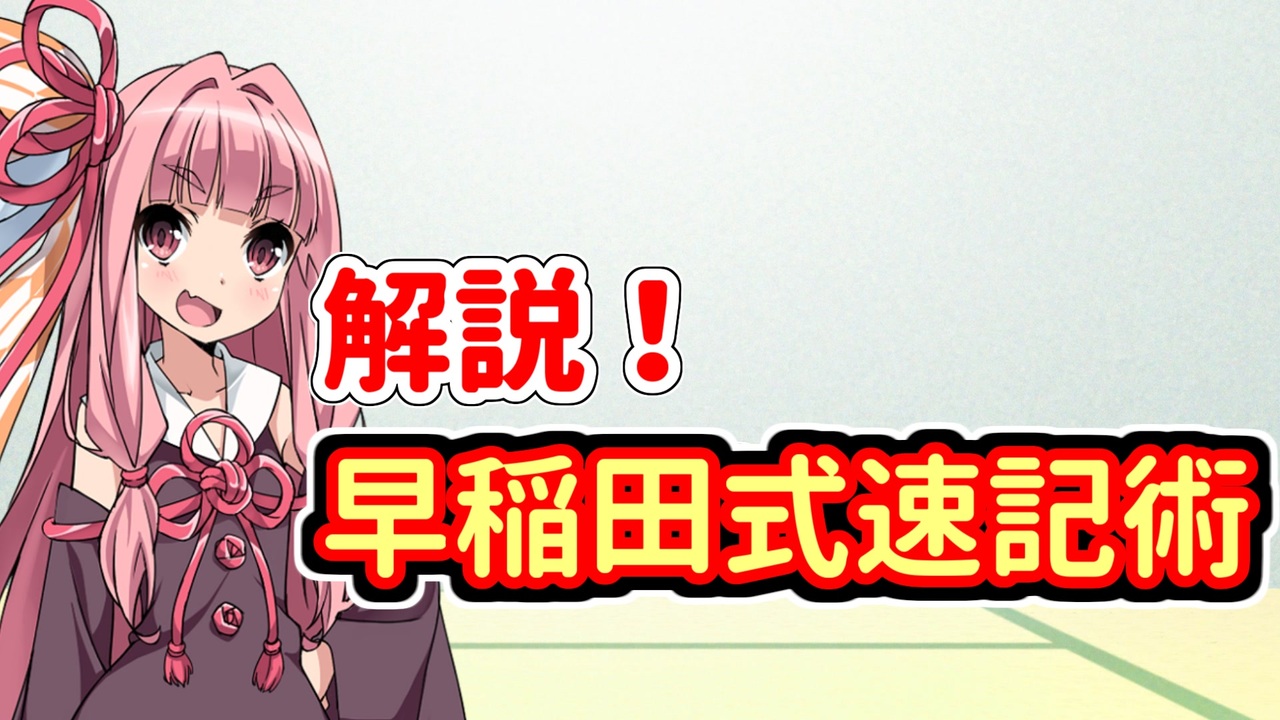 #04解説編「早稲田式速記術」<br><br>本編投稿からだいぶ間があいてしまいましたが解説編です。<br>今回は満を持して(?)早稲田式の紹介です。<br><br>次: <a href="https://www.nicovideo.jp/watch/sm36054086" class="watch">sm36054086</a><br /><br>速記講座リスト <a href="https://www.nicovideo.jp/mylist/65172492" target="_blank" rel="noopener">mylist/65172492</a><br>#01「速記ってなに?」 <a href="https://www.nicovideo.jp/watch/sm34873679" class="watch">sm34873679</a><br>練習用音声 <a href="https://www.youtube.com/playlist?list=PLPApsWf7gSBq91iUIRnW1Tmah7EzuN6Cu" target="_blank" rel="noopener nofollow">https://www.youtube.com/playlist?list=PLPApsWf7gSBq91iUIRnW1Tmah7EzuN6Cu</a><br><br>Twitter <a href="https://twitter.com/sokkichi" target="_blank" rel="noopener nofollow">https://twitter.com/sokkichi</a>