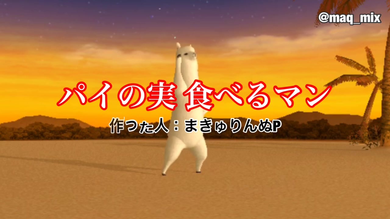 未成年の飲酒、喫煙の次くらいに悪いのは、布団の上でパイの実を食べるという行為だよね。<br><br>そんな歌です。<br><br>作詞・作曲・MIX:まきゅりんぬP<br>※PVを作る能力はないので、今回もaDanzaで踊らせてます<br><br><strong>「お前のトイレに物申す」→<a href="https://www.nicovideo.jp/watch/sm37868001" class="watch">sm37868001</a><br>「メンソレータムをパキパキに折る歌」→<a href="https://www.nicovideo.jp/watch/sm37758409" class="watch">sm37758409</a><br>「0570」→<a href="https://www.nicovideo.jp/watch/sm37758349" class="watch">sm37758349</a><br>「町工場と冷蔵庫」→<a href="https://www.nicovideo.jp/watch/sm37373469" class="watch">sm37373469</a><br>「木魚を売りました」→<a href="https://www.nicovideo.jp/watch/sm36810440" class="watch">sm36810440</a><br>「逆襲のルマンド」→<a href="https://www.nicovideo.jp/watch/sm36489526" class="watch">sm36489526</a><br>「長風呂剛」→<a href="https://www.nicovideo.jp/watch/sm37172527" class="watch">sm37172527</a><br>「生脚ハサマリ戦隊タインジャーCB」→<a href="https://www.nicovideo.jp/watch/sm36029197" class="watch">sm36029197</a><br>「早稲田・護国寺・池袋」→<a href="https://www.nicovideo.jp/watch/sm36810355" class="watch">sm36810355</a><br>「そんなRTを回さないで組合」</strong>→<strong><a href="https://www.nicovideo.jp/watch/sm35192411" class="watch">sm35192411</a><br>「ファブリーズの歌」→<a href="https://www.nicovideo.jp/watch/sm33216538" class="watch">sm33216538</a><br>「グリーンピース嫌いの歌」→<a href="https://www.nicovideo.jp/watch/sm34481685" class="watch">sm34481685</a><br>「なんで買ったん、ホームベーカリー」→<a href="https://www.nicovideo.jp/watch/sm33263722" class="watch">sm33263722</a><br>「安宿」→<a href="https://www.nicovideo.jp/watch/sm34826484" class="watch">sm34826484</a><br>「旦那の実家に悪戯する歌」→<a href="https://www.nicovideo.jp/watch/sm34107920" class="watch">sm34107920</a><br><br>コード譜</strong><br><a href="https://ja.chordwiki.org/wiki/%E3%83%91%E3%82%A4%E3%81%AE%E5%AE%9F%E9%A3%9F%E3%81%B9%E3%82%8B%E3%83%9E%E3%83%B3" target="_blank" rel="noopener nofollow">https://ja.chordwiki.org/wiki/%E3%83%91%E3%82%A4%E3%81%AE%E5%AE%9F%E9%A3%9F%E3%81%B9%E3%82%8B%E3%83%9E%E3%83%B3</a><br /><br><span style="font-size: 10px;">普段はTwitterに居ます。</span><br><br><span style="font-size: 10px;">あっ、歯ブラシ持ってくるの忘れた!ま、えっか。コンビニで買おう。<br>くらいの気軽さでフォローして下さい《*゚ω゚*》プルプル<br>@maq_mix</span>