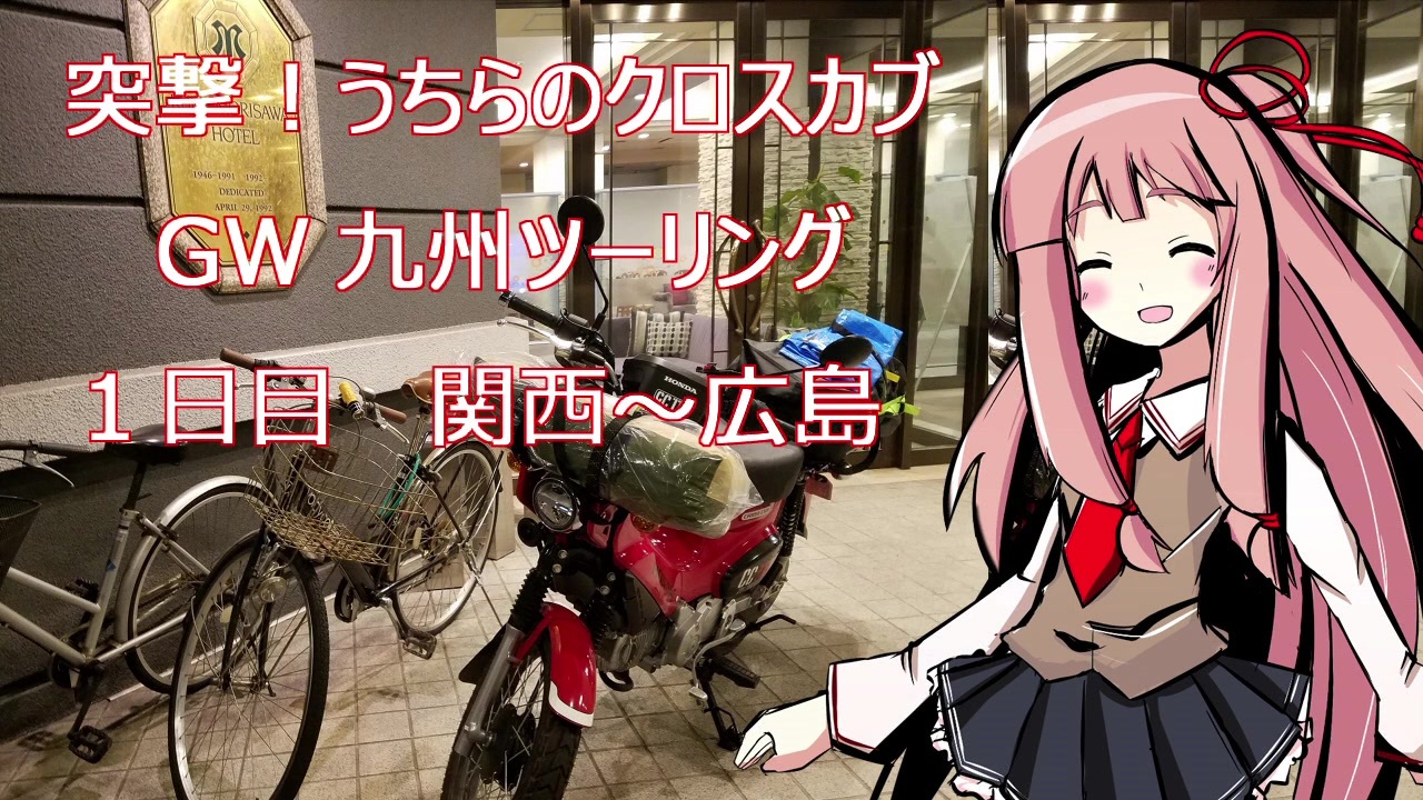2019 年 GWに九州へ行ってまいりました。<br>9 日間の日程となります。<br><br>本動画は1 日目の動画です。<br>ほぼすべて走行中の動画となります。<br><br>免許取得して間もない未熟者が、原付二種バイク(クロスカブ)で九州を目指すと、どんな様になるか参考になれば幸いです。<br><br>前 <a href="https://www.nicovideo.jp/watch/sm34745660" class="watch">sm34745660</a><br>次 <a href="https://www.nicovideo.jp/watch/sm35430539" class="watch">sm35430539</a><br><br>投稿動画一覧 <a href="https://www.nicovideo.jp/mylist/65782949" target="_blank" rel="noopener">mylist/65782949</a>