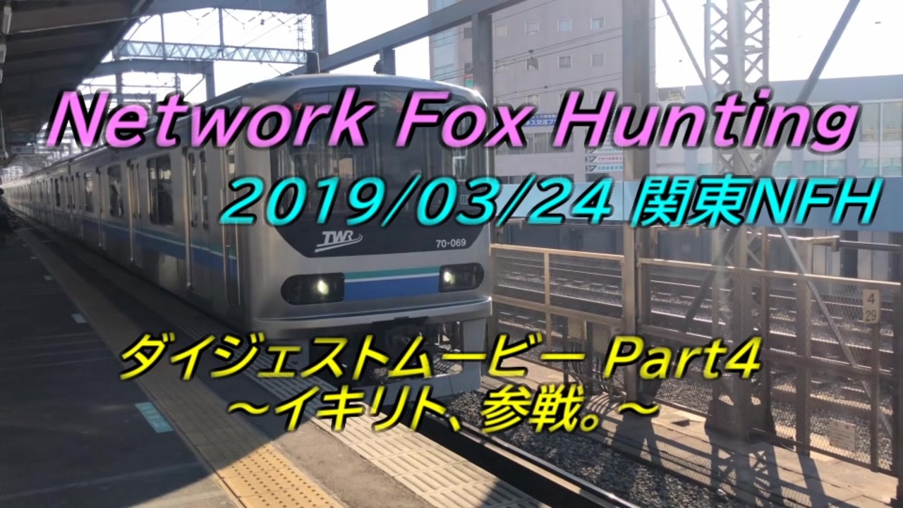 <span style="color: #ff0000; font-size: 16px;"><strong><s>今回のテーマは、「んまぁ、キリトかな~www」</s></strong></span><br><br><span style="color: #000000; font-size: 14px;">2019年3月24日(日)に開催された、ニコニコ鉄道主催関東NFHの狐サイドのまとめ動画になります。<br>動画データがあまりにも重すぎるので編集が簡素になってしまった点は否めないです。その点は本当に申し訳ないです。</span><br>また、スマホで撮影してるためかなり映像がブレます。<br>酔う可能性も否めないので、無理を感じたらブラウザバックをオススメします。<br>その分投稿頻度はそこそこのペースで上げたいと思っております。<br>そして撮れ高はそこそこあるのでPart6か7くらいまでいくんじゃないかなぁと...思います。<br><br>←Part3【<a href="https://www.nicovideo.jp/watch/sm35054565" class="watch">sm35054565</a>】|Part4|Part5 【<a href="https://www.nicovideo.jp/watch/sm35583551" class="watch">sm35583551</a>】→<br><span style="color: #000000; font-size: 14px;">NFHってなんぞ?→ </span><span style="color: #006699; font-size: 14px;"><a href="http://nicotetsu.wikiwiki.jp/?NetworkFoxHunting" target="_blank" rel="noopener nofollow">http://nicotetsu.wikiwiki.jp/?NetworkFoxHunting</a></span><br>twiplaはこちら→<a href="https://twipla.jp/events/333450" target="_blank" rel="noopener nofollow">https://twipla.jp/events/333450</a><br>