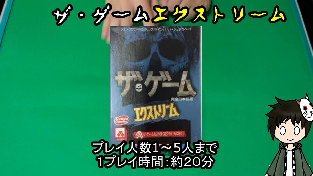<span style="color: #0a0a0a; font-size: 14px;">今回紹介するボードゲームは「ザ・ゲーム」です</span><br><br>今回の記事=<a href="https://www.itumonotsk9.com/thegameextreme" target="_blank" rel="noopener nofollow">https://www.itumonotsk9.com/thegameextreme</a><br><br><span style="color: #0a0a0a; font-size: 14px;">・内容<br>全てのカードを使わないと我々の敗北となってしまう協力してカードを使いきれ<br><br>一回始めたら勝てるまでやめられない<br>魔力がある<br><br>値段:¥2052<br><br>難易度:★★☆☆☆<br>盛り上がり:★★★★★<br><br>AmazonURL=</span><a href="https://www.amazon.co.jp/%E3%82%A2%E3..." target="_blank" rel="noopener nofollow">https://www.amazon.co.jp/%E3%82%A2%E3...</a><br><br>ーーーーーーーーーーーーーーーーーーーーーーー<br>・TKCのチャンネル=<a href="http://www.nicovideo.jp/user/43527784" target="_blank" rel="noopener nofollow">http://www.nicovideo.jp/user/43527784</a><br>・カゲ卍ちゃんねる=<a href="http://www.nicovideo.jp/user/46459939" target="_blank" rel="noopener nofollow">http://www.nicovideo.jp/user/46459939</a><br>・sinnto(走るデコイ)=<a href="http://www.nicovideo.jp/user/47334477" target="_blank" rel="noopener nofollow">http://www.nicovideo.jp/user/47334477</a><br>・<span style="font-size: 13px;">998</span>=<a href="https://twitter.com/ku_official_ku" target="_blank" rel="noopener nofollow">https://twitter.com/ku_official_ku</a><br><br>その他...<br>・TKC07のTwitter=<a href="https://twitter.com/07TKC2" target="_blank" rel="noopener nofollow">https://twitter.com/07TKC2</a><br>