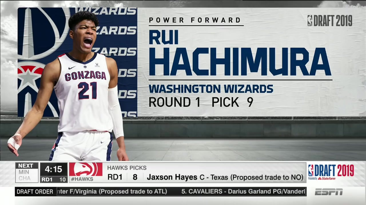 【NBA】2019 NBAドラフト - 1巡目 9th Pick - 八村 塁 - ワシントンウィザーズ