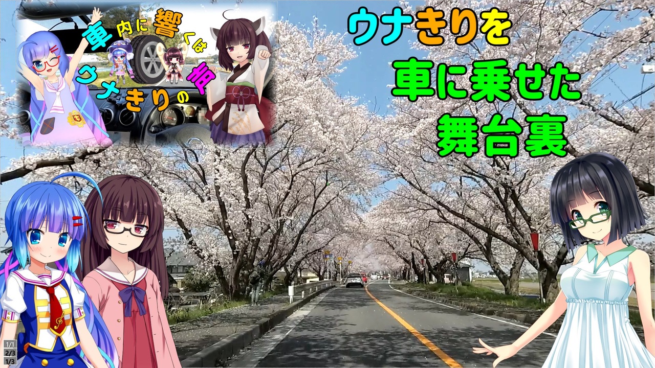 <span style="color: lime; font-size: 24px;">セイ)今日は4月59日なのでまだ春です。いいね?</span><br><span style="color: #ff9900; font-size: 11pt;">きり)何言ってんだこいつ。</span><br> <br> <br>初めまして&いつもご視聴ありがとうございます。Raybackです。<br><span style="color: #efefef; font-size: 10px;">春なのに暑いですね。</span><br> <br>この動画は、<span style="color: blue;">ウナ</span><span style="color: #ff9900;">きり</span>車載<br>“車内に響くはウナきりの声”の#4,#5で頂いたコメントのコメ返し動画となります。<br>まだご覧でない方は、先にそちらのご視聴をおすすめいたします。<br>→<a href="https://www.nicovideo.jp/mylist/64413811" target="_blank" rel="noopener">mylist/64413811</a><br> <br>今回のドライブルートの桜並木ですが、<br>車両の進入制限とかも(祭りが被らなければ多分)ないので、<br>ドライブをしながら花見をするにはおすすめです。<br><span style="color: #efefef; font-size: 10px;">覚えてたら来年あたりいかがでしょうか。</span><br> <br>さて、次回は<span style="color: lime;">セイカさん</span>のお誕生日祝い動画となります。<br>7月5日0時の投稿予定です。<br>→投稿しました <a href="https://www.nicovideo.jp/watch/sm35343356" class="watch">sm35343356</a><br> <br> <br>乗っている車 :日産 DUALIS<br>走っている(撮影)場所 :鍋田川(愛知県と三重県の県境)<br>動画画質 :1080p<br>Twitter :@Lapitaz<br>ウナきりのラジオ放送始めました→<a href="https://www.nicovideo.jp/series/27360" target="_blank" rel="noopener">series/27360</a><br> <br> <br> <br><span style="color: #efefef; font-size: 10px;">夏服セイカさんほんとかわいい。</span>