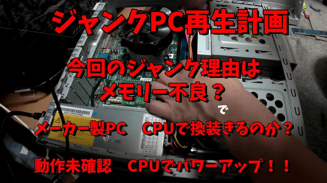 今回 見つけたジャンクPCは<br>NEC製 PC-MJ19ELZCG<br><br>発売年月 2013/05 出荷月同年6月<br>CPU Celeron G465 1.9GHz<br>メモリ 2G×2枚 4GB<br>HDD 250G<br>ドライブ CD-ROM・DVD-ROM<br>OS Windows 7 Professional SP1<br><br>購入価格は送料込み3300円<br><br>高いのか安いのかわかりません<br><br>今回の症状は<br><br>パソコンが起動しないとしか書いてませんでした<br><br>聞くのも面倒だったので買ってみました<br><br>i3 2100に換装してみました<br><br><span style="font-size: 14px;">前回の動画 </span><a href="https://www.nicovideo.jp/watch/sm35189186" class="watch">sm35189186</a><br><br><span style="color: #000000; font-size: 14px;">投稿ジャンクパーツ系マイリスト</span><br><span style="color: #252525; font-size: medium;"><a href="https://www.nicovideo.jp/series/31300" target="_blank" rel="noopener nofollow">https://www.nicovideo.jp/series/31300</a></span><br><br><span style="color: #000000; font-size: 14px;">こちのほうが更新は早いです <br><br>【Youtubeチャンネル登録はこちら】</span><br><span style="color: #006699; font-size: 14px;"><a href="https://www.youtube.com/channel/UCYnnJk2_E2vo2Yhgbb5vQ3A" target="_blank" rel="noopener nofollow">https://www.youtube.com/channel/UCYnnJk2_E2vo2Yhgbb5vQ3A</a></span>