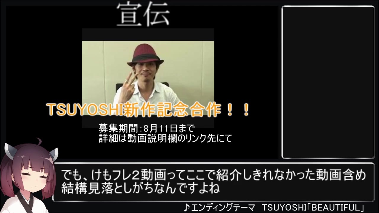 紹介させていただいた動画一覧↓<br><strong>ゴマすりサンダークソバード </strong><a href="https://www.nicovideo.jp/watch/sm35080554" class="watch">sm35080554</a><br><br><strong>芝生でお散歩ゴマイヌちゃん </strong><a href="https://www.nicovideo.jp/watch/sm35110266" class="watch">sm35110266</a><br><br><strong>例のノリノリイエイヌちゃんGB.egao </strong><a href="https://www.nicovideo.jp/watch/sm35170860" class="watch">sm35170860</a><br><br><strong>抱卵GB </strong><a href="https://www.nicovideo.jp/watch/sm35143776" class="watch">sm35143776</a><br><br><strong>世にも奇妙なけものフレンズ2「速さに溺れた鳥」前編 </strong><a href="https://www.nicovideo.jp/watch/sm35137523" class="watch">sm35137523</a><br><br><strong>K,フレンズ:00</strong> <a href="https://www.nicovideo.jp/watch/sm35202865" class="watch">sm35202865</a><br><br><a href="http://u0u0.net/WCoo" target="_blank" rel="noopener nofollow">http://u0u0.net/WCoo</a> ←TSUYOSHI新曲発表記念合作の詳細