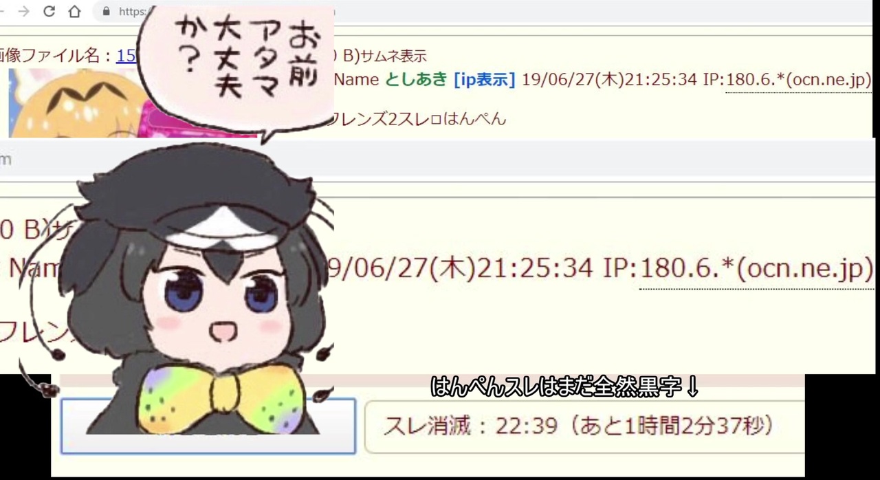 バッタ細にぃのけもフレ2キャラは大好き<br><br><br><a href="https://may.2chan.net/b/res/649509347.htm" target="_blank" rel="noopener nofollow">https://may.2chan.net/b/res/649509347.htm</a><br>><strong>無念</strong><span style="color: #800000; font-size: medium;"> Name </span><strong>としあき [ip表示]</strong><span style="color: #800000; font-size: medium;"> 19/06/27(木)21:25:34 IP:180.6.*(ocn.ne.jp) No.649509347del </span><br><br><span style="color: #800000; font-size: 18px;"><strong>IP:180.6.*(ocn.ne.jp) </strong></span><br><br><span style="color: #800000; font-size: medium;">取り急ぎ。<br><br><br>追記</span><br>>>180.6.*(ocn.ne.jp) 立てた奴<br>>>見た事無い気がするが一応注意<br>>SCP-JP巻き込もうとした奴と同じ可能性があるな