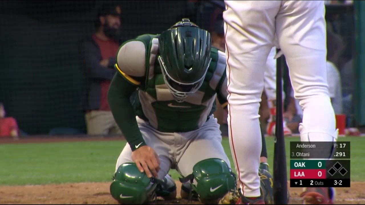 【MLB】大谷のファールチップでキャッチャー撃チン