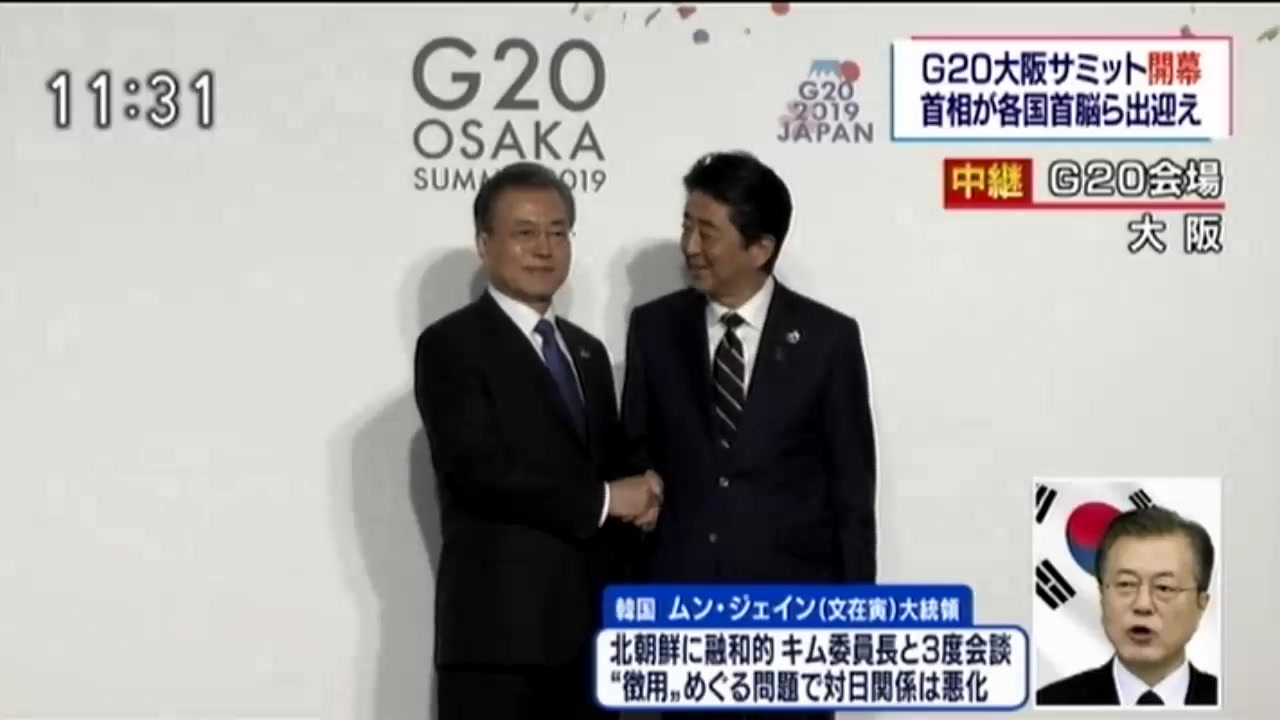 データ詳細 G20大阪サミット 安倍総理が韓国の文在寅大統領を出迎え