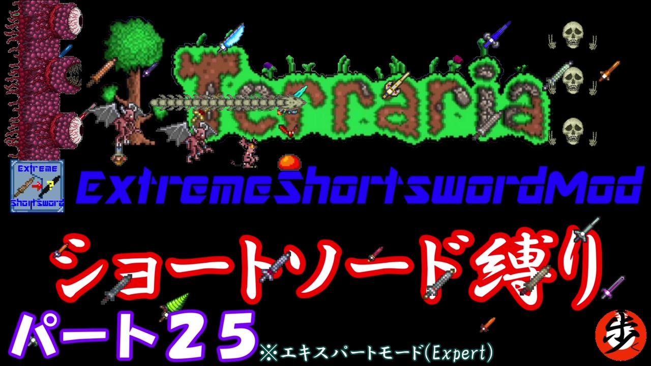今回はついに肉壁に挑戦!<br>果たしてハードモード突入は?!<br><strong>皆様お待たせしました!<br>2019年6月30日より<br>『Extremeshortsword』MOD公開しました!<br>tModLoaderからダウンロード可能です!<br>(※動画内で質問やバグ等の情報は受け付けておりません!)</strong><br><br>マッピーさんによるダンジョンガーディアン1ティックキル!動画<br>→<a href="https://www.youtube.com/watch?v=Dbo-jbhttRo&feature" target="_blank" rel="noopener nofollow">https://www.youtube.com/watch?v=Dbo-jbhttRo&feature</a><br><br>switchで海外版Terrariaの購入方法動画→<a href="https://www.nicovideo.jp/watch/sm35325224" class="watch">sm35325224</a><br><br><span style="font-size: 13px;">歩くのツイッター→@aruku_douga</span><br><br>ルール(特に決めていませんが一応) <br>1.ショートソード以外の武器は使用しない。(攻撃が当たらない) <br>2.ゲーム内のボスを全て倒す。(イベントや襲撃は余裕があれば) <br>3.バグ技の使用は禁止 (当たり前) <br>4.編集は頑張らない () <br><br><a href="https://www.nicovideo.jp/watch/sm35293102" class="watch">sm35293102</a>←前 次回→<a href="https://www.nicovideo.jp/watch/sm35357378" class="watch">sm35357378</a> 7月6日(土曜日)9時公開<br>ショートソード縛りシリーズ→<a href="https://www.nicovideo.jp/series/12423" target="_blank" rel="noopener">series/12423</a><br>前シリーズ(オワタ式)シリーズ→<a href="https://www.nicovideo.jp/series/12415" target="_blank" rel="noopener">series/12415</a><br>歩くの過去シリーズ→<a href="https://www.nicovideo.jp/mylist/57583133" target="_blank" rel="noopener">mylist/57583133</a><br><br>今回のYouTube→<span style="color: #167ac6; font-size: 11px;"><a href="https://youtu.be/ekjidORsIeM" target="_blank" rel="noopener nofollow">https://youtu.be/ekjidORsIeM</a></span>