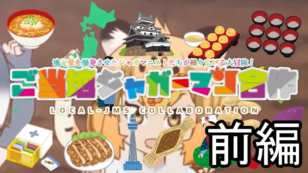 <span style="color: #ff0000;"><u>※当合作の一部作品に「けものフレンズ2」をすこる場面があります。</u></span><br><br><br>ローカルCM、ローカルソングなどを題材にしたご当地ジャガーマンが、一堂に会した「ご当地ジャガーマン合作」!!<br>作品総数31点、前編+後編合計約42分間(OP・ED含む)に及ぶ、日本全国ジャガーマンの旅をお楽しみ下さい!!<br><br>後編→<a href="https://www.nicovideo.jp/watch/sm35331684" class="watch">sm35331684</a><br><br>当合作内作品の単品:<a href="https://www.nicovideo.jp/mylist/65952545" target="_blank" rel="noopener">mylist/65952545</a><br><br>レギュレーション等の情報はこちらで公開しています:<br>・ジャガーマンシリーズWiki内特設ページ:<a href="https://wikiwiki.jp/jaguarmanss/%E3%82%A4%E3%83%99%E3%83%B3%E3%83%88%E5%B0%82%E7%94%A8%E6%8E%B2%E7%A4%BA%E6%9D%BF/%E3%81%94%E5%BD%93%E5%9C%B0%E3%82%B8%E3%83%A3%E3%82%AC%E3%83%BC%E3%83%9E%E3%83%B3%E5%90%88%E4%BD%9C" target="_blank" rel="noopener nofollow">https://wikiwiki.jp/jaguarmanss/%E3%82%A4%E3%83%99%E3%83%B3%E3%83%88%E5%B0%82%E7%94%A8%E6%8E%B2%E7%A4%BA%E6%9D%BF/%E3%81%94%E5%BD%93%E5%9C%B0%E3%82%B8%E3%83%A3%E3%82%AC%E3%83%BC%E3%83%9E%E3%83%B3%E5%90%88%E4%BD%9C</a><br>・レギュレーションフル版・統計データダウンロード:<a href="https://yahoo.jp/box/baRoH9" target="_blank" rel="noopener nofollow">https://yahoo.jp/box/baRoH9</a> (2019年7月11日 お問い合わせ専用メールアドレス閉鎖に伴い追記)