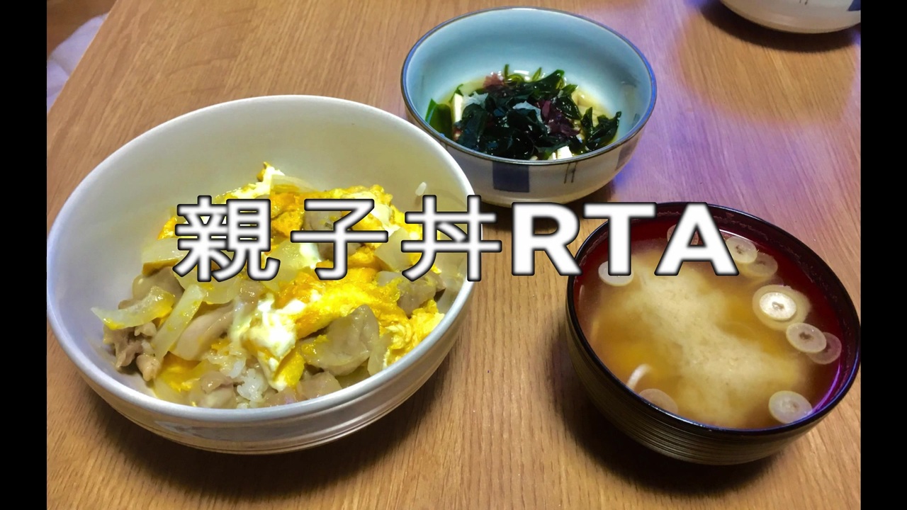 <span style="color: #000000; font-size: 14px;">親子丼RTA</span><br><br><span style="font-size: 16px;">今回のメニュー<br>親子丼 ブーケレタスとトマトのサラダ ナスの味噌汁</span><br />生放送コミュ : co3449810<br><span style="color: #000000; font-size: 13px;">twitter : HIDE44221100</span>