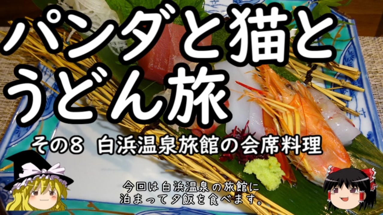2019年5月に行った関西・四国旅の動画です。<br><br>今回は白浜温泉の旅館に泊まって夕飯を食べます。<br><br><a href="https://www.nicovideo.jp/watch/sm35304626" class="watch">sm35304626</a><span style="font-size: 13px;">←前 次→</span><a href="https://www.nicovideo.jp/watch/sm35368057" class="watch">sm35368057</a><br />2016年3月バンコク旅行:<a href="https://www.nicovideo.jp/mylist/55379591" target="_blank" rel="noopener">mylist/55379591</a><br>2016年5月京都旅行:<a href="https://www.nicovideo.jp/mylist/56723118" target="_blank" rel="noopener">mylist/56723118</a><br>2016年10月欧州旅行:<a href="https://www.nicovideo.jp/mylist/57436380" target="_blank" rel="noopener">mylist/57436380</a><br>2017年5月ラスベガス旅行:<a href="https://www.nicovideo.jp/mylist/59028624" target="_blank" rel="noopener">mylist/59028624</a><br>2017年10月東南アジア旅行:<a href="https://www.nicovideo.jp/mylist/60285764" target="_blank" rel="noopener">mylist/60285764</a> <br>2018年4月シンデレラ台湾公演: <a href="https://www.nicovideo.jp/mylist/61722391" target="_blank" rel="noopener">mylist/61722391</a> <br>2018年5月アメリカ南部旅行: <a href="https://www.nicovideo.jp/mylist/61975762" target="_blank" rel="noopener">mylist/61975762</a><br>2018年7月アジア周遊旅行: <a href="https://www.nicovideo.jp/mylist/64286586" target="_blank" rel="noopener">mylist/64286586</a><br><span style="color: #000000; font-size: 13px;">2019年5月関西四国旅行:<a href="https://www.nicovideo.jp/mylist/65528802" target="_blank" rel="noopener">mylist/65528802</a><br>2019年11月ハワイ旅行:</span><a href="https://www.nicovideo.jp/mylist/67105548" target="_blank" rel="noopener">mylist/67105548</a><br>2020年7月青森旅行:<a href="https://www.nicovideo.jp/mylist/69420883" target="_blank" rel="noopener">mylist/69420883</a><br>2020年7月函館旅行:<a href="https://www.nicovideo.jp/mylist/69679117" target="_blank" rel="noopener">mylist/69679117</a><br>2020年9月帯広旅行:<a href="https://www.nicovideo.jp/mylist/70215055" target="_blank" rel="noopener">mylist/70215055</a><br>2021年3月シャニマス2nd幕張公演:<a href="https://www.nicovideo.jp/mylist/70929944" target="_blank" rel="noopener">mylist/70929944</a><br>2021年4月シャニマス3rd名古屋公演:<a href="https://www.nicovideo.jp/mylist/71219275" target="_blank" rel="noopener">mylist/71219275</a><br>2021年5月シャニマス3rd福岡公演:<a href="https://www.nicovideo.jp/mylist/71476541" target="_blank" rel="noopener">mylist/71476541</a><br>2021年10月旭川旅行:<a href="https://www.nicovideo.jp/mylist/72049043" target="_blank" rel="noopener">mylist/72049043</a><br>2021年10月ノーザンホースパーク:<a href="https://www.nicovideo.jp/mylist/72511627" target="_blank" rel="noopener">mylist/72511627</a><br>2021年11月小樽旅行:<a href="https://www.nicovideo.jp/mylist/73035930" target="_blank" rel="noopener">mylist/73035930</a><br>2022年5月京都旅行:<a href="https://www.nicovideo.jp/mylist/73238896" target="_blank" rel="noopener">mylist/73238896</a><br>2022年4月まつえり蒲郡旅行:<a href="https://www.nicovideo.jp/mylist/74284028" target="_blank" rel="noopener">mylist/74284028</a><br>2022年6月青森恐山:<a href="https://www.nicovideo.jp/mylist/75049717" target="_blank" rel="noopener">mylist/75049717</a><br>2023年-2024年銀座ビジホ紹介:<a href="https://www.nicovideo.jp/mylist/75847390" target="_blank" rel="noopener">mylist/75847390</a><br>2021年12月シンデレラ愛知:<a href="https://www.nicovideo.jp/mylist/76382303" target="_blank" rel="noopener">mylist/76382303</a>