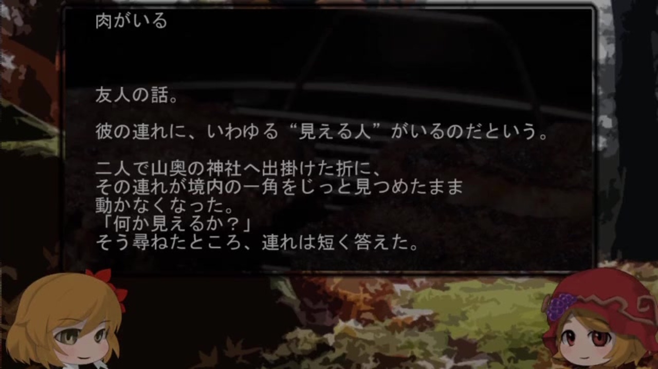 一言だけ/ ヒトリ/ 茶袋/ 肉がいる/ 藪の中<br><br>BGM は H/MIX GALLERY様からお借りしました<br>HP → <a href="http://www.hmix.net/" target="_blank" rel="noopener nofollow">http://www.hmix.net/</a><br><br>背景は 足成様からお借りしました<br>HP → <a href="http://www.ashinari.com/" target="_blank" rel="noopener nofollow">http://www.ashinari.com/</a><br><br>次の動画に自動的に移動します<br><br>次話→<a href="https://www.nicovideo.jp/watch/sm35350576" class="watch">sm35350576</a><br>前話→<a href="https://www.nicovideo.jp/watch/sm35228045" class="watch">sm35228045</a><br><br>200話→<a href="https://www.nicovideo.jp/watch/sm27907155" class="watch">sm27907155</a><br>150話→<a href="https://www.nicovideo.jp/watch/sm25497523" class="watch">sm25497523</a><br>100話→<a href="https://www.nicovideo.jp/watch/sm23323763" class="watch">sm23323763</a><br>50話→<a href="https://www.nicovideo.jp/watch/sm21677721" class="watch">sm21677721</a><br> 1話→<a href="https://www.nicovideo.jp/watch/sm20541663" class="watch">sm20541663</a><br><br><a href="https://www.nicovideo.jp/mylist/36623261" target="_blank" rel="noopener">mylist/36623261</a><br><br>洒落怖<br><a href="https://www.nicovideo.jp/mylist/37109662" target="_blank" rel="noopener">mylist/37109662</a><br><br>シリーズ<br><a href="https://www.nicovideo.jp/mylist/44947135" target="_blank" rel="noopener">mylist/44947135</a><br><br>一口<br><a href="https://www.nicovideo.jp/mylist/47244966" target="_blank" rel="noopener">mylist/47244966</a><br><br><br><span style="color: #000000; font-size: 13px;">MAE様、満鉄ミカイ様、猫ノ様、ガガンボ様、さすけ様、玉兎様、猫饅頭(こしあん)様、そも様、<br>TTT様、まおうちゃん様、yukit様、ノレン様、SYU様、鉄雄様、げろしゃぶ様、Mono Eye様、重巡洋艦「青葉」様、Atena Glory様、redd様、nonta様、魑魅魍魎様、きみ様、バラライカ様、饅頭廃様、ゆめのかなた様、niemand様、くじら様 広告ありがとうございますm(_ _)m</span>