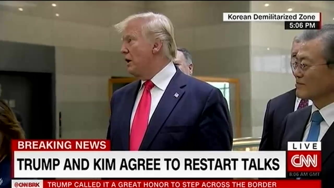 トランプ大統領が金正恩委員長との50分の首脳会談後に、各国の記者に囲まれて会見を行いました。「条件が整えば」との事の様ですが、金正恩をホワイトハウスに招待すると表明したそうです。
