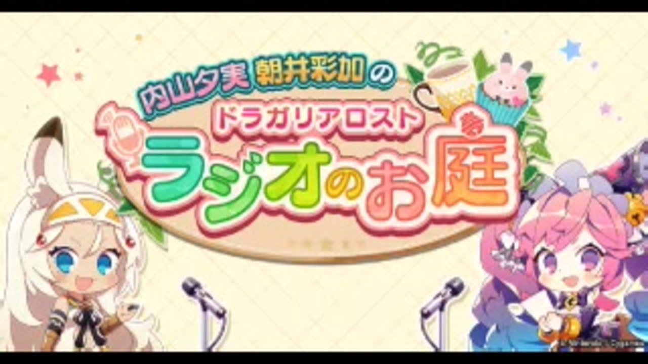 公式ラジオ番組「内山夕実 朝井彩加のドラガリアロスト ラジオのお庭」放送開始!<br>放送時間は、「毎週日曜24:00 ~ 24:30」です。<br>「ドラガリアロスト ラジオキャッスル」がリニューアルして、クラウ役の内山夕実さんとシーリス役の朝井彩加さんのおふたり が楽しくおしゃべりするラジオ番組です。<br>YouTube版では収録の様子が見られる映像付きで公開予定です!<br>ぜひご視聴ください!<br>また、「ドラガリアロスト ラジオキャッスル」の番組アーカイブも、引き続きYouTubeにてご覧いただけます。<br>番組ではリスナーからのメールやおはがきを大募集中です!<br>番組に期待することや、やって欲しいこと、パーソナリティおふたりへのメッセージなどをお送りください。<br>メールは下記のアドレスへお送りください。<br>dra@joqr.net<br>おはがきは下記の宛先へお送りください。<br>〒105-8002 文化放送「内山夕実 朝井彩加のドラガリアロスト ラジオのお庭」の係まで<br>▼『ドラガリアロスト』公式YouTube Channel<br><a href="https://www.youtube.com/channel/UC5eGagNBgJYiH2DCVbxTSIA" target="_blank" rel="noopener nofollow">https://www.youtube.com/channel/UC5eGagNBgJYiH2DCVbxTSIA</a><br>▼「内山夕実 朝井彩加のドラガリアロスト ラジオのお庭」公式Twitter<br><a href="https://twitter.com/DragalialostR" target="_blank" rel="noopener nofollow">https://twitter.com/DragalialostR</a><br>▼「内山夕実 朝井彩加のドラガリアロスト ラジオのお庭」公式サイト<br><a href="http://www.joqr.co.jp/dragalialost_oniwa/" target="_blank" rel="noopener nofollow">http://www.joqr.co.jp/dragalialost_oniwa/</a><br><a href="https://www.nicovideo.jp/mylist/65227220" target="_blank" rel="noopener">mylist/65227220</a>