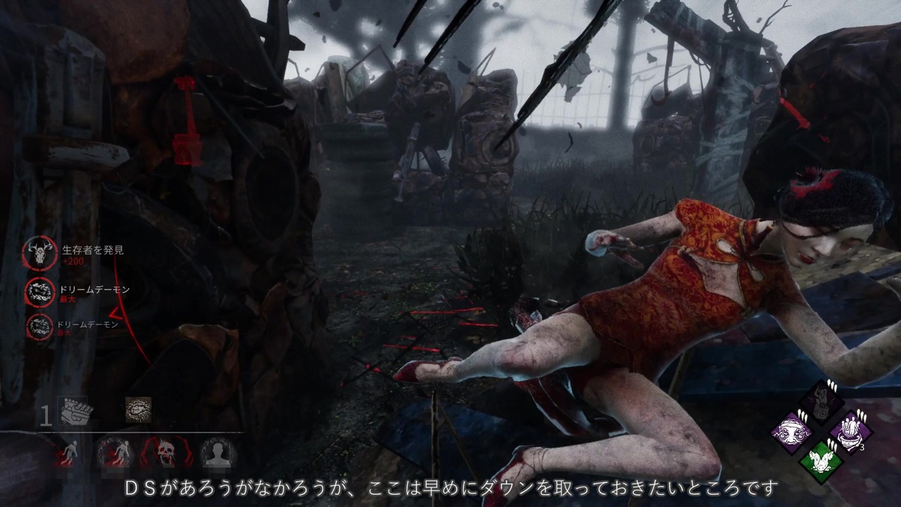 <span style="color: #000000; font-size: 13px;">およそ語られうることは明晰に語られうる。そして、論じえないことについては、キラーは沈黙せねばなるまい</span><br><br><a href="https://www.nicovideo.jp/watch/sm35295816" class="watch">sm35295816</a>←前回 リスト <a href="https://www.nicovideo.jp/mylist/62705262" target="_blank" rel="noopener">mylist/62705262</a> 次回→<a href="https://www.nicovideo.jp/watch/sm35372251" class="watch">sm35372251</a><br><br>データ系キャラって大体がデータ捨ててからが本番なとこある……ありません?<br>あとほんとは走るやつがやりたかったけど技術が足りなかったです<br><br>以下パーク説明という名のコピペ<br>・観察&虐待 <br>生存者を追跡している時、心音範囲が8m増加する。<br>生存者を追跡していない時、心音範囲が8m減少する。<br>更に視野が広くなり、レベルが上がる事に効果が大きくなる。(3・5・10°拡大)<br>ただし、他の視野効果とは重複しない。<br><br>・バーベキュー&チリ <br>生存者をフックに吊るすと効果発動。<br>吊るしたフックから40m以上離れている生存者を4秒間可視表示する。<br>また各生存者を初めて吊るすと専用ポイントを1個取得する。(最大2・3・4個)<br>1個につき最終獲得BPが25%増加する。 (最大:50・75・100%)<br><br>・ずさんな肉屋<br>生存者に攻撃を与えると効果発動<br>生存者の出血痕が残る頻度が少し・普通・大きく上昇<br>更に重傷状態(治療速度-20%)を付与する。<br>この重傷状態は治療を終えると解除される。<br>(負傷状態から這いずり状態にした場合、この重傷状態の効果は重複しない)<br><br>・イタチが飛び出した<br>生存者をフックに吊るすと効果発動。<br>発電機を破壊行動した際、即座に修理進行率を15・20・25%後退させる。<br>毎回吊るした後から1台目の発電機の破壊行動のみ有効。<br>このパーク効果は30秒の時間制限がある。