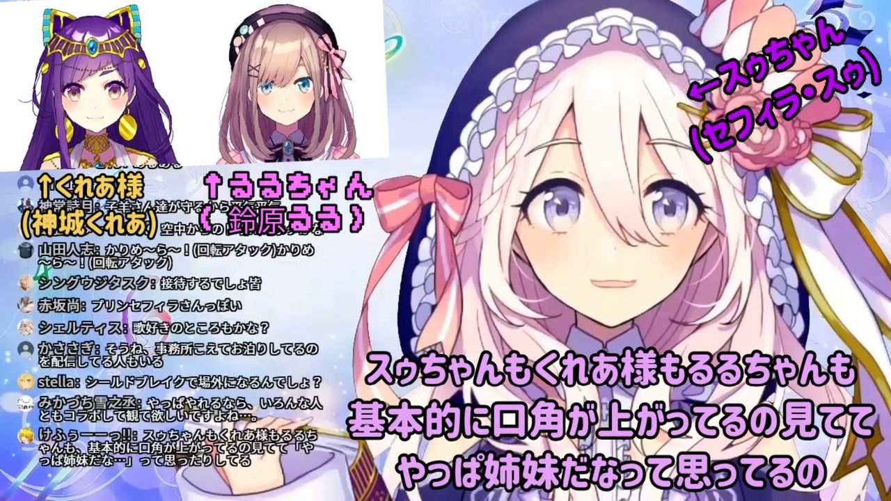 個人的に好きなところを切り抜かせていただきました。<br>さいね四姉妹の三女セフィラ・スゥさん。<br>姉の神城くれあ様や妹の鈴原るるちゃんの配信に必ずといっていいほど顔を出してたり、自分の配信でもほぼ毎回姉妹のお話をするシスコンっぷりがかわいいです。<br><br>元動画︰【雑談】そういえばこの前…こんなことがありました雑談【第26回せふぃらいぶ_占い師VTuber】<br><a href="https://www.youtube.com/watch?v=GHBr1CBs_48" target="_blank" rel="noopener nofollow">https://www.youtube.com/watch?v=GHBr1CBs_48</a><br><br>セフィラ・スゥさん<br>YouTube<br><a href="https://www.youtube.com/channel/UCHKJMmZJjLpkjZDPp_miSzg?app=desktop" target="_blank" rel="noopener nofollow">https://www.youtube.com/channel/UCHKJMmZJjLpkjZDPp_miSzg?app=desktop</a><br>Twitter<br><a href="https://twitter.com/SephiraSu" target="_blank" rel="noopener nofollow">https://twitter.com/SephiraSu</a>