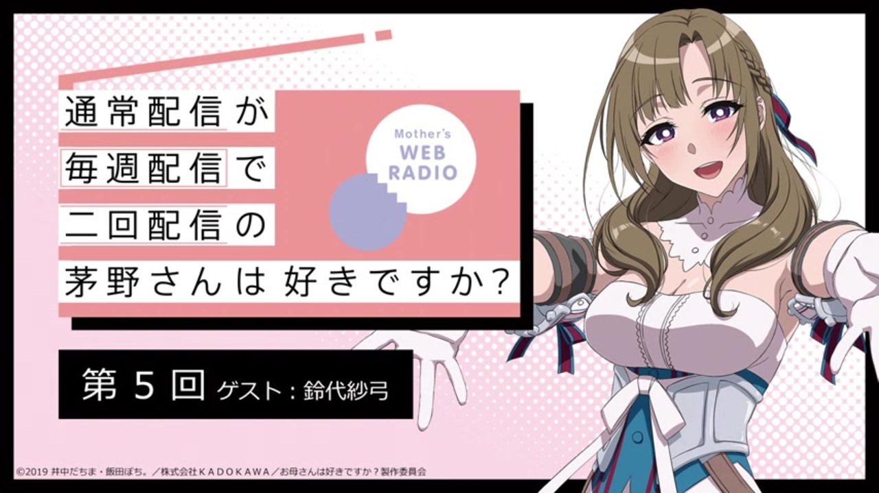 「通常攻撃が全体攻撃で二回攻撃のお母さんは好きですか?」公式WEBラジオ「通常配信が毎週配信で二回配信の茅野さんは好きですか?」第5回目公開!<br><br>今回はゲストにワイズ役:鈴代紗弓さんをお迎えしてお届け!<br><br>大好真々子役の茅野愛衣パーソナリティーの本番組は、毎週水曜日と金曜日の週2回配信!<br>皆さんからのたくさんのメッセージお待ちしております!<br>メッセージは下記よりお送りください。<br>↓<br><a href="https://okaasan-online.com/radio/" target="_blank" rel="noopener nofollow">https://okaasan-online.com/radio/</a><br><br><スタッフ><br>原作:井中だちま(ファンタジア文庫/株式会社KADOKAWA)<br>原作イラスト:飯田ぽち。<br>監督:岩崎良明<br>キャラクターデザイン:八重樫洋平<br>シリーズ構成:赤尾でこ<br>音楽:井内啓二<br>アニメーション制作:J.C.STAFF<br><br><キャスト><br>大好真々子:茅野愛衣<br>大好真人:石谷春貴<br>ワイズ:鈴代紗弓<br>ポータ:原田彩楓<br>メディ:Lynn<br>白瀬:新井里美<br>公式サイト <a href="https://okaasan-online.com/" target="_blank" rel="noopener nofollow">https://okaasan-online.com/</a><br>Twitter @okaasan_online(<a href="https://twitter.com/okaasan_online)" target="_blank" rel="noopener nofollow">https://twitter.com/okaasan_online)</a><br>タグ #お母好き<br>リスト <a href="https://www.nicovideo.jp/mylist/65756615" target="_blank" rel="noopener">mylist/65756615</a><br><br>