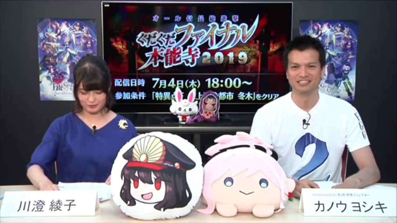 『Fate/Grand Order』ぐだぐだ新イベントが開催!<br>今回の放送は、まもなく開催予定の期間限定イベント『オール信長総進撃 ぐだぐだファイナル本能寺2019』の情報を公開!<br>川澄綾子さんをMCに迎え、イベント情報をお届けします!<br><br>配信日時<br>2019年7月3日(水) 18:00~<br><br>出演者<br>川澄綾子(アルトリア・ペンドラゴン/アン・ボニー 役)<br>カノウヨシキ(Fate/Grand Order 第2部開発ディレクター)<br><br>■この機会にぜひアプリをダウンロード!<br>iPhoneの方はこちら<br><a href="https://t.metaps.biz/v1/cpi/click?cam..." target="_blank" rel="noopener nofollow">https://t.metaps.biz/v1/cpi/click?cam...</a><br><br>Androidの方はこちら<br><a href="https://t.metaps.biz/v1/cpi/click?app..." target="_blank" rel="noopener nofollow">https://t.metaps.biz/v1/cpi/click?app...</a><br><br>Fate/Grand Order 公式サイト<br><a href="http://www.fate-go.jp/" target="_blank" rel="noopener nofollow">http://www.fate-go.jp/</a><br><br>