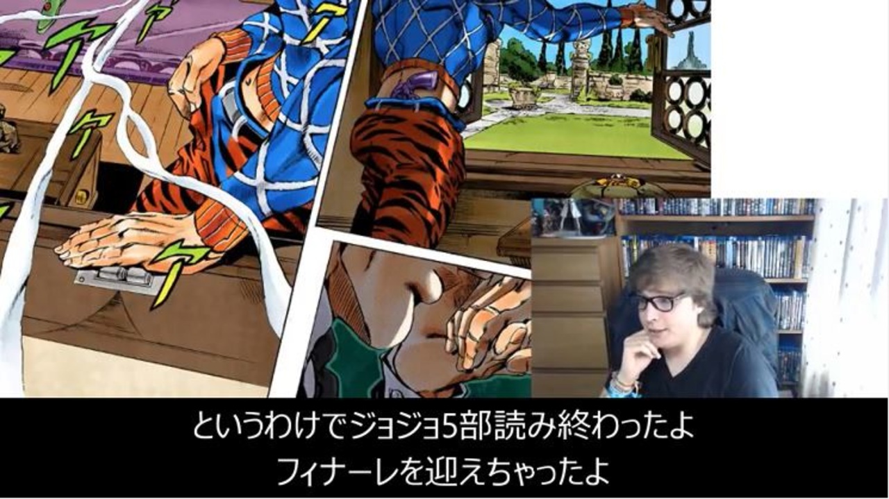 ちんたら作業してたらいつの間にかアニメも最終回目前になってたけど、せっかくなので投稿しときます。<br>ドライバーニキがジョジョ 5部の漫画朗読配信してた時の読了後の感想部分に字幕をつけてみました。<br>漫画の感想なので『海外の反応アニメシリーズ』タグをつけて良いのかよく分からないのですが、不適切のようなら外します。<br>あと、今後は諸事情で作業する時間がなかなか取れそうにないので、アニメ・漫画レビュー関連の字幕動画の作成は当分の間お休みします。<br>気が向いたら、別の動画はあげるかもしれませんが…。<br><br>毎度のことながら、元動画の再生・高評価・コメントもよろしくお願いしますね。<br>元動画 ⇒ <a href="https://youtu.be/_agcxHMMYZg" target="_blank" rel="noopener nofollow">https://youtu.be/_agcxHMMYZg</a><br><br>ドライバーニキ関係の字幕動画 ⇒ <a href="https://www.nicovideo.jp/mylist/64181901" target="_blank" rel="noopener">mylist/64181901</a><br>その他ジョジョ関連の投稿動画 ⇒ <a href="https://www.nicovideo.jp/mylist/63912452" target="_blank" rel="noopener">mylist/63912452</a> <br><br>