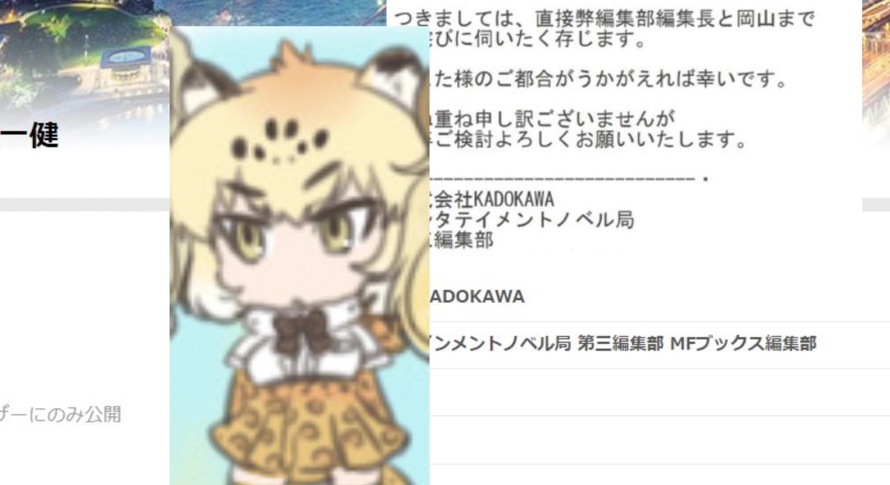 <br><a href="https://twitter.com/Niyang53/status/1147125283608092672" target="_blank" rel="noopener nofollow">https://twitter.com/Niyang53/status/1147125283608092672</a><br><br>MF文庫を語るメールから「直に会いたい」というメールが来る<br>↓<br>闇金業者から仕事用の携帯電話にかかってくる<br>↓<br>警察に相談するといったきり音信不通<br><a href="https://twitter.com/Niyang53/status/1146647488411009024?s=19" target="_blank" rel="noopener nofollow">https://twitter.com/Niyang53/status/1146647488411009024?s=19</a><br><br><br>エンタテインメントノベル局 第三編集部 MFブックス編集部<br><a href="https://8card.net/p/39610531150" target="_blank" rel="noopener nofollow">https://8card.net/p/39610531150</a><br><br><a href="https://web.archive.org/web/20190705050122/https://8card.net/p/39610531150" target="_blank" rel="noopener nofollow">https://web.archive.org/web/20190705050122/https://8card.net/p/39610531150</a><br><a href="http://archive.is/m7jKY" target="_blank" rel="noopener nofollow">http://archive.is/m7jKY</a><br>(魚拓)<br><br>ねこたススム先生、仕事用メールアドレス流出問題<br><a href="https://www.nicovideo.jp/watch/sm35354122" class="watch">sm35354122</a><br><br>反社会的勢力疑惑のKADOKAWAの報酬未払いを告発したねこたススム氏へ行われた行為<br><br>Lineへの不正アクセス試行<br><a href="https://twitter.com/Niyang53/status/1146663305164947458" target="_blank" rel="noopener nofollow">https://twitter.com/Niyang53/status/1146663305164947458</a><br>個人情報を握っている事をちらつかせるスパムメールの送信<br><a href="https://twitter.com/Niyang53/status/1146357273804992512" target="_blank" rel="noopener nofollow">https://twitter.com/Niyang53/status/1146357273804992512</a><br>非公開の仕事用電話番号に闇金詐欺業者の嫌がらせ電話<br><a href="https://www.nicovideo.jp/watch/sm35352809" target="_blank" rel="noopener nofollow">https://www.nicovideo.jp/watch/sm35352809</a><br>その後になぜか該当ツイートが削除<br><a href="https://twitter.com/Niyang53/status/1146647488411009024" target="_blank" rel="noopener nofollow">https://twitter.com/Niyang53/status/1146647488411009024</a><br>アカウントの乗っ取りもしくは脅迫の可能性あり<br>【公安調査庁】<br><a href="http://www.moj.go.jp/psia/report_to_psia.html" target="_blank" rel="noopener nofollow">http://www.moj.go.jp/psia/report_to_psia.html</a><br>【匿名通報ダイヤル】<br><a href="https://www.tokumei24.jp/system/xb/tok.user.Index" target="_blank" rel="noopener nofollow">https://www.tokumei24.jp/system/xb/tok.user.Index</a><br><br><span style="color: #800000; font-size: medium;">無念 Name としあき 19/07/05(金)22:34:57 IP:106.130.*(au-net.ne.jp)[8] No.651448010 del そうだねx10<br>ねこた熱で倒れてただけじゃん<br>また無駄騒ぎかよ<br>しょうもないな</span>