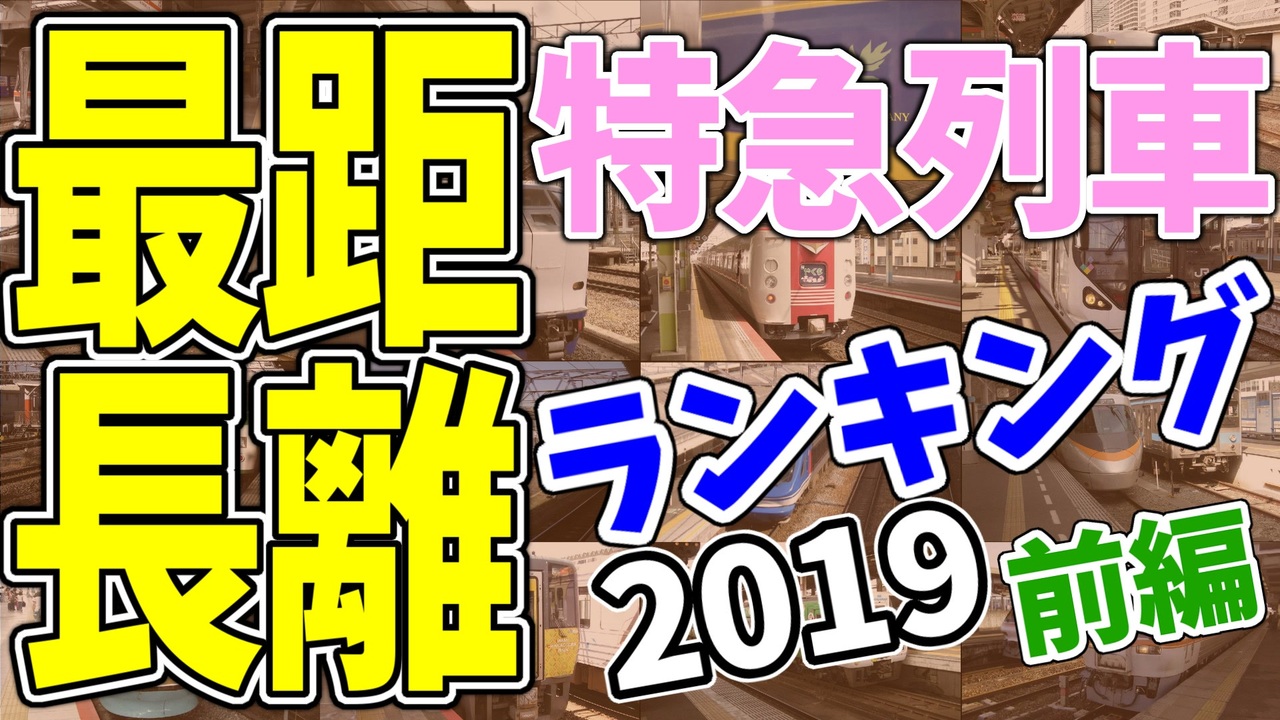 鉄道のちょっとした豆知識・ノウハウを紹介します!<br>最も長い距離を走る特に急がない列車の2019年版ランキングです。<br>前編は最短距離からはじまります<br><br>ランキングに直行→ <a href="#" class="seekTime" data-seekTime="1:27" onclick="seekNicoPlayer('#1:27'); return false;">#1:27</a><br><br>NEXT → <a href="https://www.nicovideo.jp/watch/sm35378804" class="watch">sm35378804</a> (最長特急2019後編)<br>PREV → <a href="https://www.nicovideo.jp/watch/sm35198194" class="watch">sm35198194</a> (日本一だった駅)<br><br>【最長距離2018】前<a href="https://www.nicovideo.jp/watch/sm34731010" class="watch">sm34731010</a> 後<a href="https://www.nicovideo.jp/watch/sm35151375" class="watch">sm35151375</a><br><br>【鉄道豆知識】→ <a href="https://www.nicovideo.jp/mylist/63869025" target="_blank" rel="noopener">mylist/63869025</a><br><br>【18きっぷ2019春】→ <a href="https://www.nicovideo.jp/mylist/65053011" target="_blank" rel="noopener">mylist/65053011</a><br><br>【Part1全集マイリスト】→<a href="https://www.nicovideo.jp/mylist/63231980" target="_blank" rel="noopener">mylist/63231980</a><br><br>【Twitter】<a href="https://twitter.com/nagara_side" target="_blank" rel="noopener nofollow">https://twitter.com/nagara_side</a><br><br>【Youtube版】 ⇒ <a href="https://youtu.be/8kf1ZFHVZF0" target="_blank" rel="noopener nofollow">https://youtu.be/8kf1ZFHVZF0</a><br><br>==広告いただいた方々(敬称略)==(19.7.6,まで)<br>みなり月、JS研、かーこんパンチ、どりぃ、ふー、<br>はいぱーあんくる、wata、明石入道、whitearrow5、<br>Necky TriStar、ぐっさん12、みお、みゅー、RAL<br>==============================