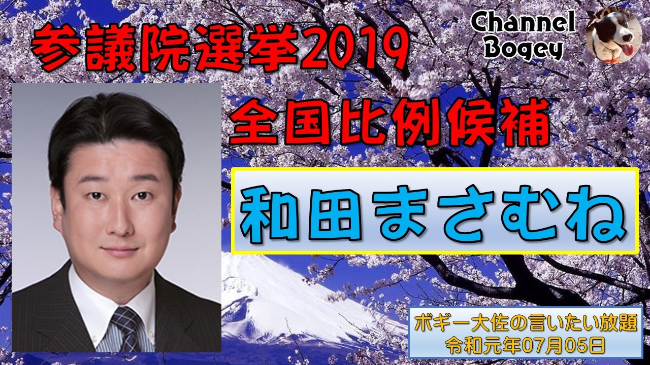 2019年07月05日(金)21時放送の #ボギーチャンネル です。<br><br>本日の放送は、参議院選挙が始まりましたが、全国比例候補の「和田まさむね」議員についてです。そして、沖縄と本土の分断を図る連中のお話です。詳細は動画をご覧ください。<br><br>ボギ-チャンネル公認Twitterです。<br><a href="https://twitter.com/ChannelBogey?lang=ja" target="_blank" rel="noopener nofollow">https://twitter.com/ChannelBogey?lang=ja</a><br><br>沖縄の真実を伝えるボギーチャンネルは毎日21時からツイキャス放送中。<br><a href="http://twitcasting.tv/c:bogey_channel" target="_blank" rel="noopener nofollow">http://twitcasting.tv/c:bogey_channel</a><br><br>依田啓示さんをサポートする会のページです。<br><a href="http://supportyodakeiji.ti-da.net/e9913732.html" target="_blank" rel="noopener nofollow">http://supportyodakeiji.ti-da.net/e9913732.html</a><br><br>カナン基金のサイトはこちらです。<br><a href="https://project.canaan-farm.com/?fbclid=IwAR3QdpqaSgB33POhrqjiiaS2c0vn5aS7uxE1XUbn_UJpsUJjmpGymSo4n2I" target="_blank" rel="noopener nofollow">https://project.canaan-farm.com/?fbclid=IwAR3QdpqaSgB33POhrqjiiaS2c0vn5aS7uxE1XUbn_UJpsUJjmpGymSo4n2I</a><br>