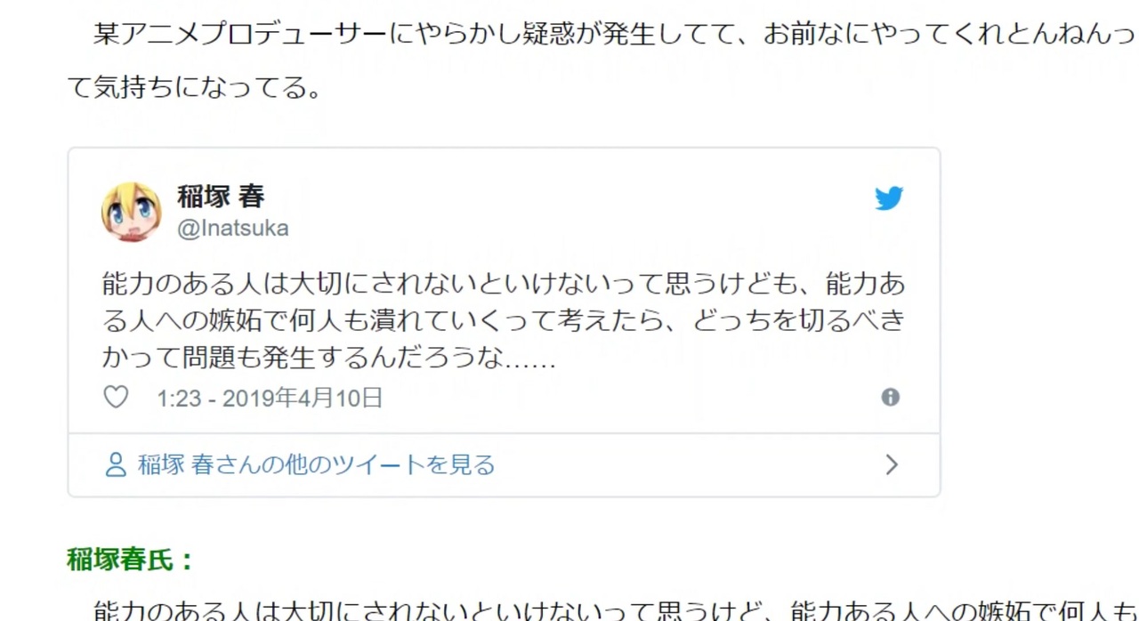 ※2019年4月時点です<br>※たつき監督&福原Pに好意的、某テ■東の横領Pに対してあきれてる立場です<br><br><a href="https://web.archive.org/web/20190707011848/https://may.2chan.net/b/res/651785948.htm" target="_blank" rel="noopener nofollow">https://web.archive.org/web/20190707011848/https://may.2chan.net/b/res/651785948.htm</a>