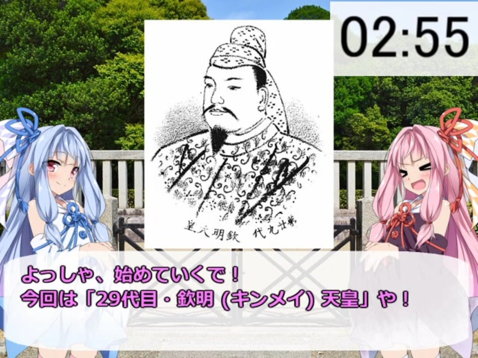 釈迦りみの公伝。半島からの事実上の撤退。<br>古代日本の歴史が大きく動いた時代です!<br><br>●欽明 (きんめい) 天皇 基本プロフィール <br> 父 継体天皇 (第三皇子) 母 手白香皇女<strong> </strong>(仁賢天皇皇女) <br> 在位 540年?~ 571年 (32年間?)<br> 生涯 509年?~ 571年 (63歳?)<br><br>●1代目 神武天皇 → <a href="https://www.nicovideo.jp/watch/sm33459779" class="watch">sm33459779</a> <br> 28代目 宣化天皇 → <a href="https://www.nicovideo.jp/watch/sm35348704" class="watch">sm35348704</a> 30代目 敏達天皇 → <a href="https://www.nicovideo.jp/watch/sm35414691" class="watch">sm35414691</a> <br>●3分天皇紹介リスト → <a href="https://www.nicovideo.jp/mylist/62530271" target="_blank" rel="noopener">mylist/62530271</a> ついったー @inocchi_0515<br> 質問箱 → <a href="https://peing.net/ja/inocchi_0515?event=7" target="_blank" rel="noopener nofollow">https://peing.net/ja/inocchi_0515?event=7</a>