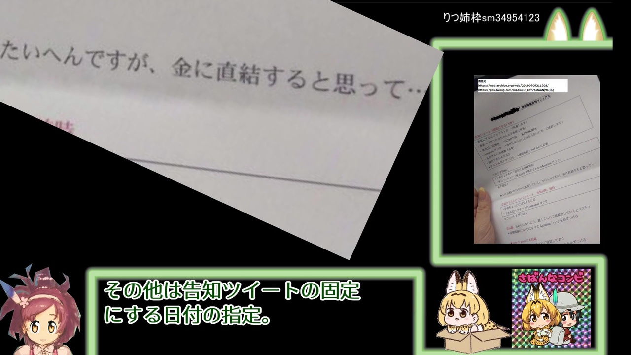 参考サイト<br><a href="https://fanfanfan176.hatenablog.com/entry/2019/07/10/001118" target="_blank" rel="noopener nofollow">https://fanfanfan176.hatenablog.com/entry/2019/07/10/001118</a><br><br><a href="https://twitter.com/accusation433c/status/1148599877498265600" target="_blank" rel="noopener nofollow">https://twitter.com/accusation433c/status/1148599877498265600</a><br><br>魚拓<br><a href="https://web.archive.org/web/20190709211208/https://pbs.twimg.com/media/D_Clfr7XUAANj9o.jpg" target="_blank" rel="noopener nofollow">https://web.archive.org/web/20190709211208/https://pbs.twimg.com/media/D_Clfr7XUAANj9o.jpg</a><br><br>KADOKAWAのとある担当(ボーノ)<br><a href="https://web.archive.org/web/20190710052434/https://may.2chan.net/b/src/1562734212150.jpg" target="_blank" rel="noopener nofollow">https://web.archive.org/web/20190710052434/https://may.2chan.net/b/src/1562734212150.jpg</a><br><br>><span style="font-size: 24px;"><strong>えっ普通この仕事は広報なりなんなりがする仕事じゃないの?</strong></span><br>>作家にやれってマニュアル渡すの?マジで?正気?<br><br>>というのが野次馬的感想<br><br>><span style="font-size: 24px;"><strong>宣伝は本人がタダ働きするのが当然っていう姿勢が見える</strong></span><br>>タダは各人が自由勝手にやるもんであって統制させたいなら賃金の発生する依頼業務だよ<br><br>>前から何のために担当がいるんだとか結構ボロクソに言われてるよ<br>>そんなんだから作家もバカッターしちゃうんだろうし<br>>担当編集が宣伝垢持って管理しててもよさそうだよね<br><br>>そりゃ作者自身が宣伝するのは大事だけど<br>>それを企業側がやれってのは体のいい無償労働だわな<br><br>>ふぁねる軍団にもあんな風にマニュアルが配られてるのかなぁ…やつら主張が揃いも揃って似たり寄ったりだもんなあ<br><br>>まあ<span style="font-size: 24px;"><strong>本当にマニュアル配ってたってのがわかったのはデカいんじゃないのかな</strong></span><br>>やってるとは言われてたけどいまいち実態はわからなかったし