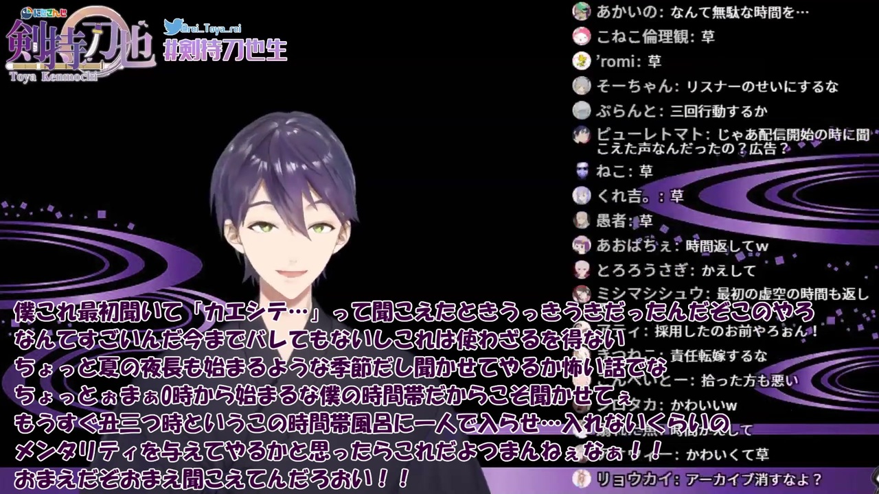 かわいそう<br><br>・剣持刀也<br>【Youtube】<a href="https://www.youtube.com/channel/UCv1fFr156jc65EMiLbaLImw?sub_confirmation=1" target="_blank" rel="noopener nofollow">https://www.youtube.com/channel/UCv1fFr156jc65EMiLbaLImw?sub_confirmation=1</a><br>【Twitter】 <a href="https://twitter.com/rei_Toya_rei" target="_blank" rel="noopener nofollow">https://twitter.com/rei_Toya_rei</a><br><br>・元動画(2019/7/7)【久々の剣持刀也】<br><a href="https://www.youtube.com/watch?v=1o7_pzAXctY" target="_blank" rel="noopener nofollow">https://www.youtube.com/watch?v=1o7_pzAXctY</a><br>▼該当箇所(19:22~)<br><a href="https://www.youtube.com/watch?v=1o7_pzAXctY&feature=youtu.be&t=1162" target="_blank" rel="noopener nofollow">https://www.youtube.com/watch?v=1o7_pzAXctY&feature=youtu.be&t=1162</a><br>・心霊現象?部分(2018/10/10)剣持刀也のSharpness Radio 第8回【ゲスト月ノ美兎さん】<br><a href="https://www.youtube.com/watch?v=VAGT3c2waj0" target="_blank" rel="noopener nofollow">https://www.youtube.com/watch?v=VAGT3c2waj0</a><br>▼該当箇所(20:19~)<br><span style="color: #000000; font-size: 13px;"><a href="https://www.youtube.com/watch?v=VAGT3c2waj0&feature=youtu.be&t=1219" target="_blank" rel="noopener nofollow">https://www.youtube.com/watch?v=VAGT3c2waj0&feature=youtu.be&t=1219</a></span>