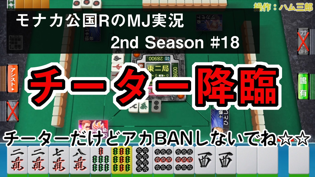 モナカ公国RのMJ実況!<br>Season2!<br>毎週日曜日〜土曜ぐらいにかけて更新予定<br><br><br><br>(C)SEGA<br>『セガNET麻雀 MJ』公式サイト<br><a href="http://sega-mj.com/" target="_blank" rel="noopener nofollow">http://sega-mj.com/</a><br>◇選手紹介◇<br>OR<br>ハム三郎<br>モナカ王国<br>※参加者は全員オカルトに麻雀の全てをかけています<br><br><br>次回→<a href="https://www.nicovideo.jp/watch/sm35444158" class="watch">sm35444158</a><br>第1回イカサマ麻雀選手権のマイリスト→<a href="https://www.nicovideo.jp/mylist/57392051" target="_blank" rel="noopener">mylist/57392051</a><br><br>プロ雀士参戦!イカサマ麻雀選手権→<a href="https://www.nicovideo.jp/watch/sm30273304" class="watch">sm30273304</a><br><br><strong>Twitter ID: monaka_rnj</strong><br>コミュニティで生放送やってます!(たまに)→co3519031<br>