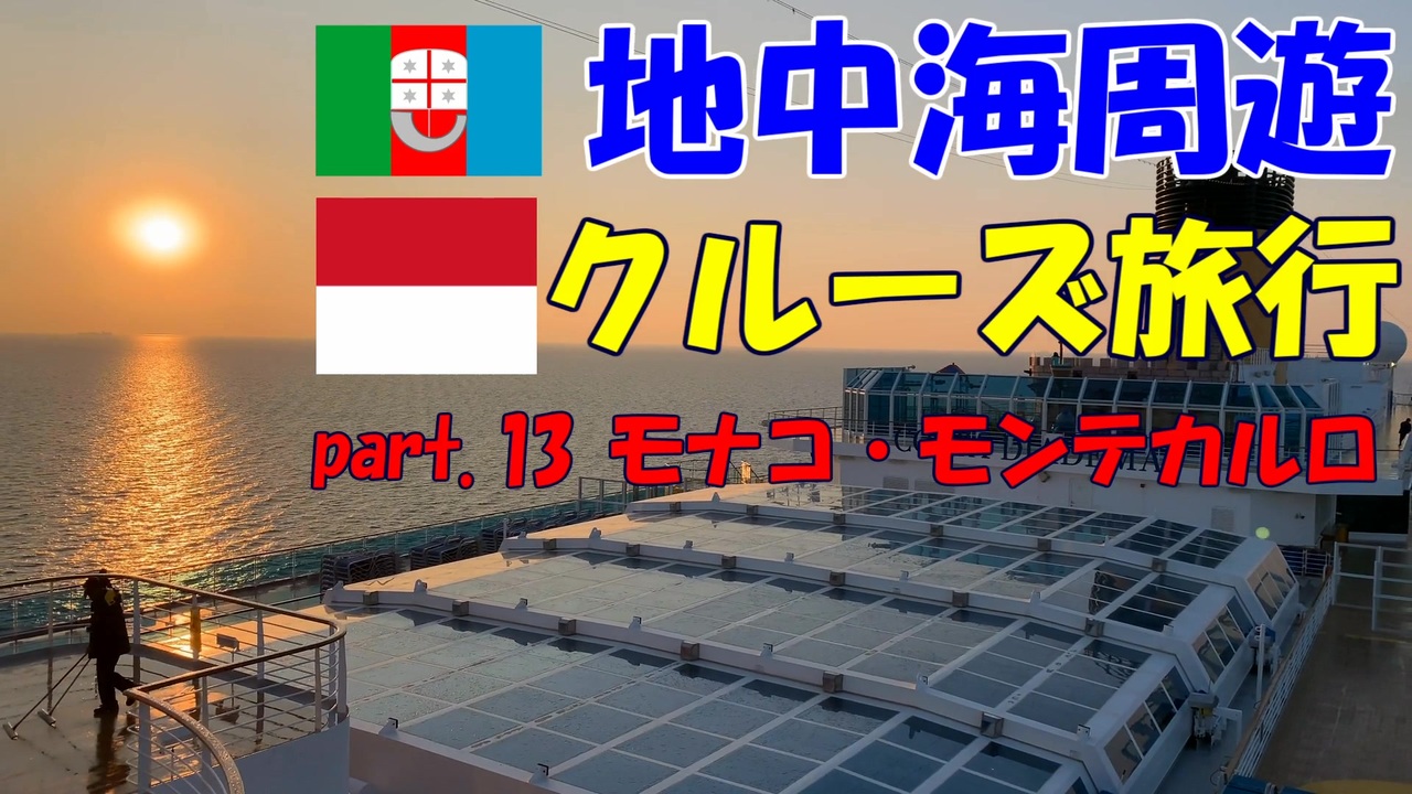 旅行7日目(クルーズ6日目)①<br>内容<br>・イタリア北西部のサボナ港からバスでモナコに移動。<br> モナコ観光(モナコ大聖堂、大公宮殿・衛兵交代、カジノ・ド・モンテカルロ、<br> F1フェアモント・ヘアピン)<br> <br><a href="https://www.nicovideo.jp/watch/sm35361051" class="watch">sm35361051</a> ← part.12 / part.14 → <a href="https://www.nicovideo.jp/watch/sm35424524" class="watch">sm35424524</a><br>地中海クルーズ→ <a href="https://www.nicovideo.jp/mylist/65465682" target="_blank" rel="noopener">mylist/65465682</a><br>これまで投稿した動画一覧→<a href="https://www.nicovideo.jp/mylist/56589571" target="_blank" rel="noopener">mylist/56589571</a><br> <br>前作にコメント、マイリス、フォロー、広告くださいました皆様、<br>誠にありがとうございました!