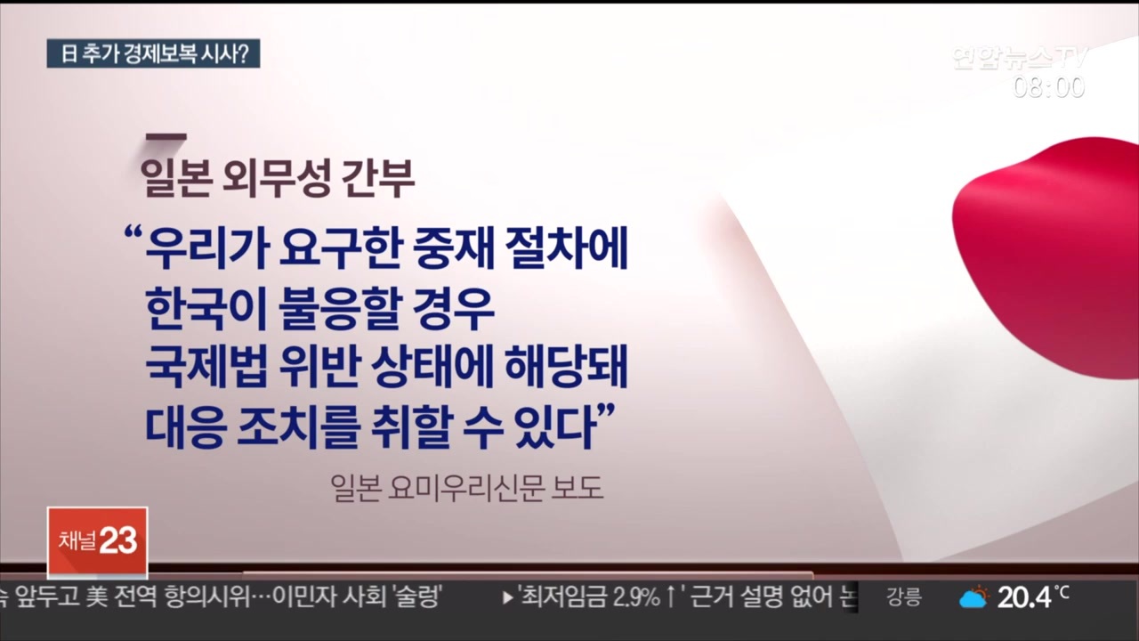 今回の韓国への輸出の特別扱い解除が物凄く効いてる様ですw 韓国メディアが、韓国政府の第3国仲裁委の設置への対応を心配していました。読売新聞の応じなければ「対応措置」を検討という記事を取り上げて、日本の出方を気にしていましたw 韓国君・・・ビビってる?<br><br>聯合ニュース報道のGoogle翻訳です。<br>[アンカー]<br><br>日本政府が韓国への追加経済報復の可能性を示唆しました。<br>強制徴用判決について、第3国仲裁委員会の設置のに私たちの政府が応じない場合は、「対応措置」を取ることができるという立場を示しました。<br><br>イボンソク記者です。<br><br>[記者]<br><br>日本が強制徴用賠償判決と関連し、韓国が仲裁委員会の設置の要求に応じないことを前提に「対応措置」を挙げました。<br><br>日本外務省幹部は「私たちが要求した仲裁手続に韓国が応じない場合、国際法違反の状態に該当されて対応措置をとることができる」と話したと、読売新聞が報道しました。<br><br>最近、韓国の半導体材料の輸出規制に乗り出した日本は、しかし、対応措置がどのかは明らかでした。<br><br>先に日本のマスコミは、仲裁委設置のために、私たちの政府の回答期限である来る木曜日まで韓国側が応じなければ国際司法裁判所提訴などの対応措置を検討する態勢と伝えました。<br><br>しかし、政府は、日本の仲裁委設置要求に対してはまだ明確な立場を出さずにいます。<br><br>イ・ナギョン首相は「いろいろな検討をしている」とし「事前伝えることができないことを理解してほしい」と言いました。<br><br>このような状況では、日本企業の日立造船が韓国から撤退するという報道が出て注目を集めています。<br><br>ニューヨーク事務所、英国法人の撤退報道のように出てきた会社側のコスト削減のためだと述べたが、強制徴用賠償判決と関連があるではないかという観測も出てきます。<br>