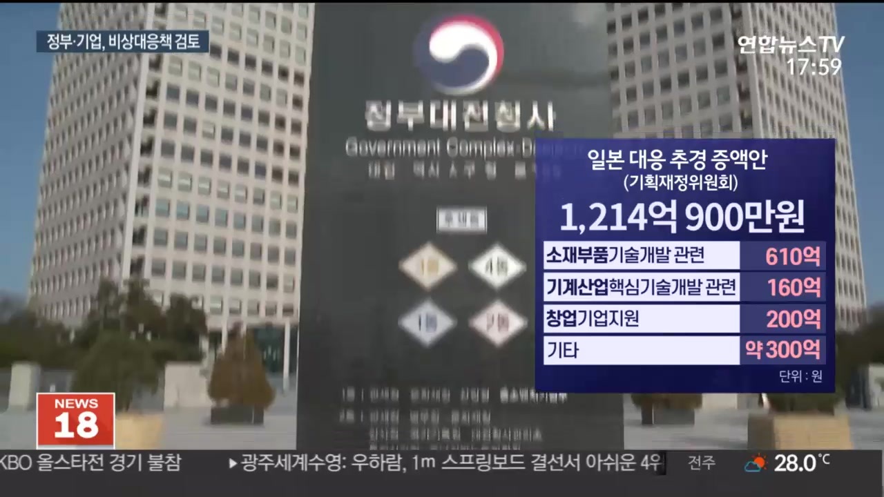 [アンカー]<br> 日本が過去12日の両国実務者協議で、韓国を「ホワイトリスト」つまりホワイト国から除外するという立場を明確にした為、韓国政府も対策作りに着手しました。<br> 5泊6日間、日本出張を終えて帰ってきたイ・ジェヨン三星電子副会長は、緊急の社長団会議を招集し、非常経営計画を議論しました。<br>イ・ドンフン記者です。<br>[記者]<br> 政府はまず、日本の輸出規制強化対応に乗り出すことに補正予算に最大3,000億ウォンを反映する方針です。<br>関連部門が緊急要求された金額は、1,200億ウォン台、源泉技術研究・開発や関連基盤を固めるために入ります。 政府は、事業リスト・増額規模が確定されると、国会に予算案を提出する予定です。<br>政府はまた、規制の3大品目のうち、高純度フッ化水素と関連研究・開発事業に税制優遇を与える案と、素材部品の開発事業の許認可過程で予備妥当性調査を省略するなどの手続きを低減する案も推進しています。<br>政府はさらに規制品目が増える場合、それに相当する主要品目の対日輸出を制限し、高率関税賦課など正面対応措置も検討しています。<br>ただし、両国間の「経済全面戦争」に広がることができないという懸念が出てくるほど最大限慎重な対策を用意するという立場です。<br><br>【産業通商資源部の関係者] "多角的な方案はすべての議論はできよ。検討もしており、...日本の状況を見ているよ。だ念頭に置いて進行するだろう。」<br>企業も対策作りに入り、非常経営体制に突入しました。<br> 特に5泊6日の日本出張に行ってきイ・ジェヨン三星電子副会長は、週末に緊急社長団会議を招集し、素材の需給の現状と対応策などを議論しました。<br> この副会長は、日本の輸入統制が拡大する可能性に備えた「コンティンジェンシープラン、つまり緊急計画を用意することを指示しました。<br><br>聯合ニュースTVイ・ドンフンです<br><br>日本の輸出規制措置による韓日葛藤がなかなか解決策が見つからずにいます。<br>全面戦争に駆け上がるか懸念する声が大きいが、この機会に誤った日韓関係を正さなければならないという主張にも力が載せられていますよ。<br>後を絶たない日本との対立は、過去1965年に結んだ韓日協定に起因する場合が多かったです。<br>植民地支配に断絶された国交を正常化する協定だったが、ここには多数の被害者への謝罪と賠償が追加ませんでした。<br>人と空間、視線を伝えるYTNインタビューシリーズは、韓日協定の限界と問題点を探って見これにより、新たな韓日関係を模索してみる企画を用意しました。<br><br>今日は最初の時間で、日帝強占被害者の権利を徹底的に無視した協定がどのように作られるようになったのか、その背景を見てみました。