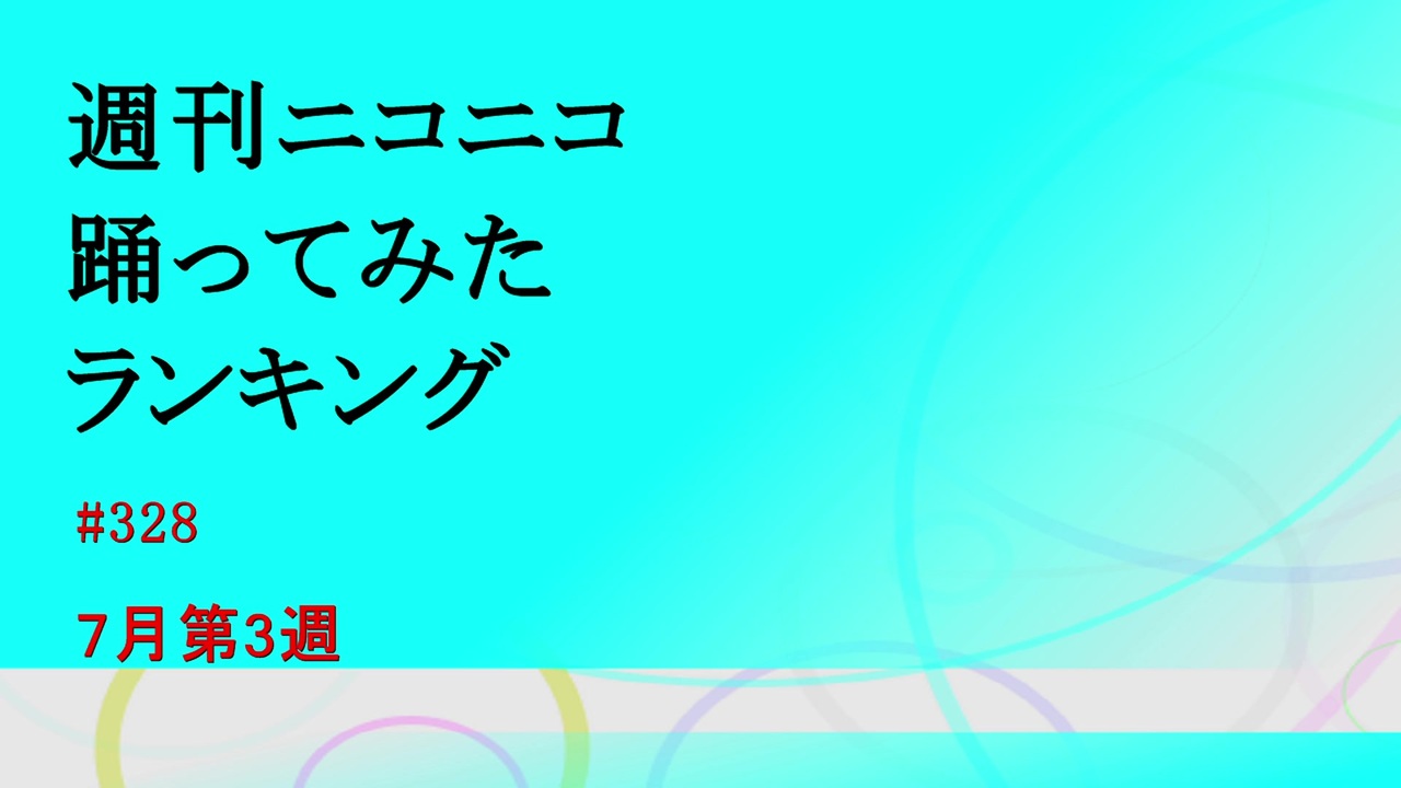 ■集計期間:7月08日5時00分~7月15日5時00分<br>■集計方法:再生数(マイリスト数の200倍を上限とする)+コメント数+マイリスト登録数×30<br>■集計対象:踊ってみたタグが設置された動画<br>──────<br>新着ランキングは7月08日5時00分~7月15日5時00分の間に投稿された動画を対象とする。<br>■紹介動画一覧 <a href="https://www.nicovideo.jp/mylist/66053080" target="_blank" rel="noopener">mylist/66053080</a><br>■使用BGM,OP:<a href="https://www.nicovideo.jp/watch/sm3505467" class="watch">sm3505467</a> ED:<a href="https://www.nicovideo.jp/watch/sm35334900" class="watch">sm35334900</a> てぃーぷ様<br>■使用ソフト:ニコニコランキングメーカー<br>──────<br>先週・・・<a href="https://www.nicovideo.jp/watch/sm35372193" class="watch">sm35372193</a><br>翌週・・・<a href="https://www.nicovideo.jp/watch/sm35434300" class="watch">sm35434300</a>