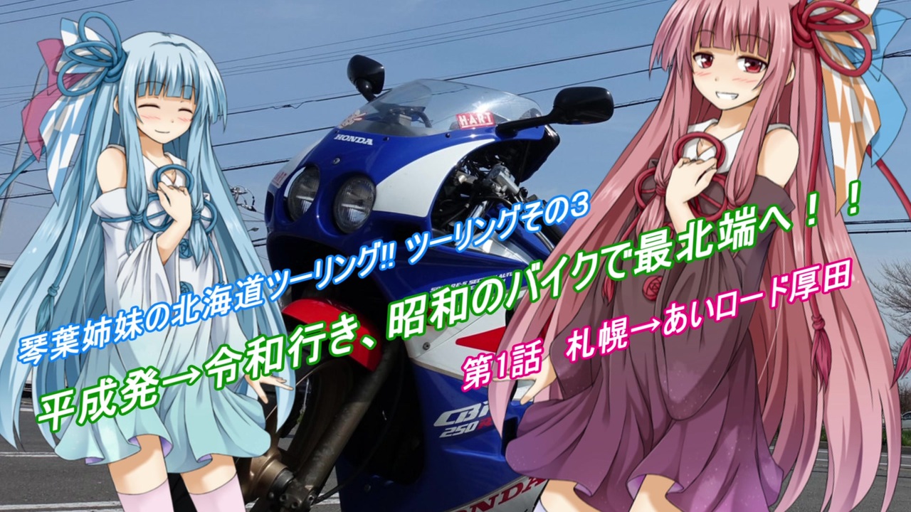 前:<a href="https://www.nicovideo.jp/watch/sm34078751" class="watch">sm34078751</a> | 次:<a href="https://www.nicovideo.jp/watch/sm35906789" class="watch">sm35906789</a><br>琴葉姉妹の北海道ドライブ&ツーリング!マイリスト → <a href="https://www.nicovideo.jp/mylist/59420546" target="_blank" rel="noopener">mylist/59420546</a><br><br>琴葉姉妹と喋るバイク、コトハが旅する北海道ツーリング!<br>今回はGWの北海道を旅します♪<br>どんな旅路が待ち受けているのか、お楽しみに!<br><br><br>お借りした立ち絵<br>ふらすこ様:<a href="https://www.nicovideo.jp/user/12086291" target="_blank" rel="noopener">user/12086291</a><br> 琴葉 茜:<a href="https://seiga.nicovideo.jp/seiga/im5612416" target="_blank" rel="noopener">im5612416</a><br> 琴葉 葵:<a href="https://seiga.nicovideo.jp/seiga/im5629051" target="_blank" rel="noopener">im5629051</a><br><br>お借りした音楽<br>魔王魂様:<a href="https://maoudamashii.jokersounds.com/" target="_blank" rel="noopener nofollow">https://maoudamashii.jokersounds.com/</a><br><br />~・~・~・~・~・~・~・~・~・~・~・~・~・~・~・<br>マイリスト一覧!<br><br>琴葉姉妹の北海道ドライブ&ツーリングはこちら!<br>・琴葉姉妹の北海道ドライブ! → <a href="https://www.nicovideo.jp/mylist/59420546" target="_blank" rel="noopener">mylist/59420546</a><br><br>琴葉姉妹がRedSignal50に挑戦!?<br>・琴葉姉妹のRed Signal 50 HOKKAIDO Course 5R/12 → <a href="https://www.nicovideo.jp/mylist/61157947" target="_blank" rel="noopener">mylist/61157947</a><br><br>結月ゆかりと紲星あかりの旅行記はこちら!<br>・ゆづきずトラベル♪ → <a href="https://www.nicovideo.jp/mylist/65174514" target="_blank" rel="noopener">mylist/65174514</a><br><br>結月ゆかりが札幌でご飯を食べますよ!<br>・結月ゆかりのおでかけごはん♪ → <a href="https://www.nicovideo.jp/mylist/70149208" target="_blank" rel="noopener">mylist/70149208</a><br><br>小春六花と仲間たちによる、小樽の物語はこちら!<br>・小樽潮風高校Project → <a href="https://www.nicovideo.jp/mylist/72119888" target="_blank" rel="noopener">mylist/72119888</a><br><br>SynthesizerV小春六花とSynthesizerV・NEUTRINO琴葉茜・葵で音楽生活♪<br>・琴葉姉妹と小樽潮風高校軽音部の音楽室。→<a href="https://www.nicovideo.jp/mylist/73248790" target="_blank" rel="noopener">mylist/73248790</a><br><br>その他、琴葉姉妹の誕生日やひじき祭など単発動画はこちら!<br>・VOICEROIDその他。→ <a href="https://www.nicovideo.jp/mylist/59789379" target="_blank" rel="noopener">mylist/59789379</a><br>~・~・~・~・~・~・~・~・~・~・~・~・~・~・~・<br>~・~・~・~・~・~・~・~・~・~・~・~・~・~・~・