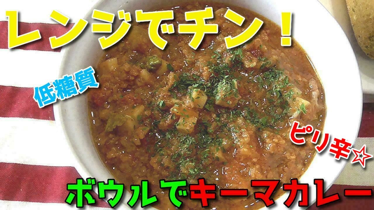 今日はレンジで簡単にできて洗い物の少ない<br>スパイス薫るキーマカレーを作りました。<br><br>カレールウを使わないので、小麦粉や片栗粉みたいな糖質を<br>摂ることなく食べることができます。<br>なので低糖質!<br><br>もちろん野菜の糖質もありますが、<br>野菜には糖質以上に必要なビタミンやミネラルが含まれているので<br>食べ過ぎなければ全然問題ありません。<br><br>簡単レンチンキーマカレー是非お試しを。<br><br>∽∽∽∽∽∽∽∽∽∽∽∽∽∽∽∽∽∽∽∽∽<br><br>【Twitter】<br>コチラ⇒<a href="https://twitter.com/yurutto_locabo" target="_blank" rel="noopener nofollow">https://twitter.com/yurutto_locabo</a><br><br>【朝食やランチにもってこいレシピまとめ】<br>コチラ⇒<a href="https://www.nicovideo.jp/my/mylist/#/66019959" target="_blank" rel="noopener nofollow">https://www.nicovideo.jp/my/mylist/#/66019959</a><br><br>【全レシピまとめ】<br>コチラ⇒<a href="https://www.nicovideo.jp/my/mylist/#/66019908" target="_blank" rel="noopener nofollow">https://www.nicovideo.jp/my/mylist/#/66019908</a><br><br><br><br>